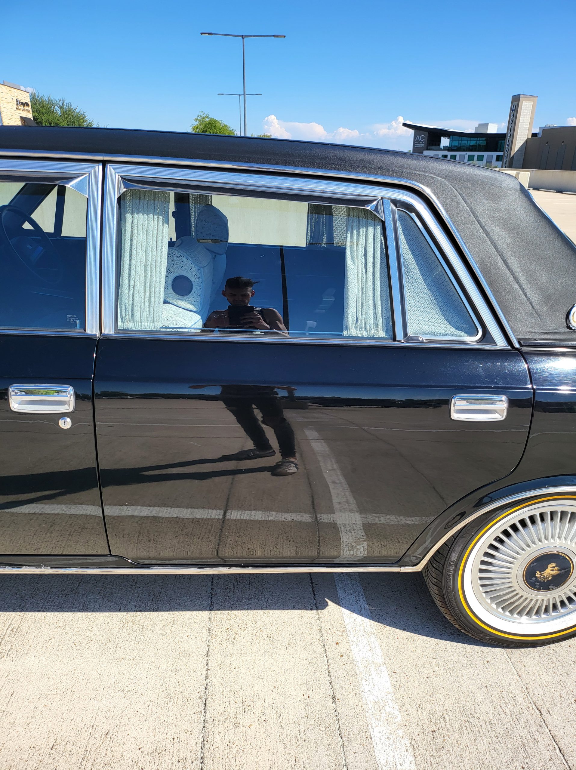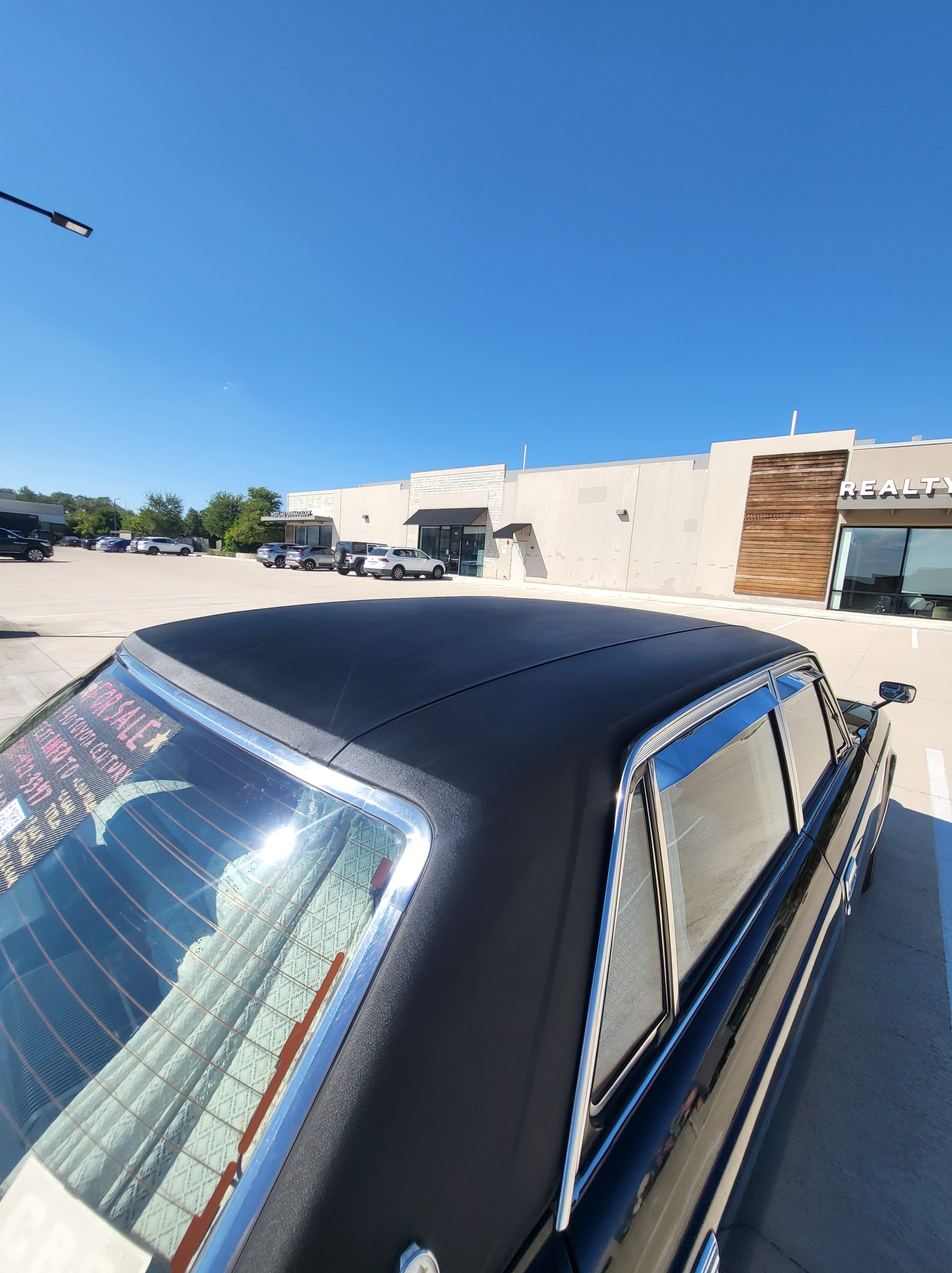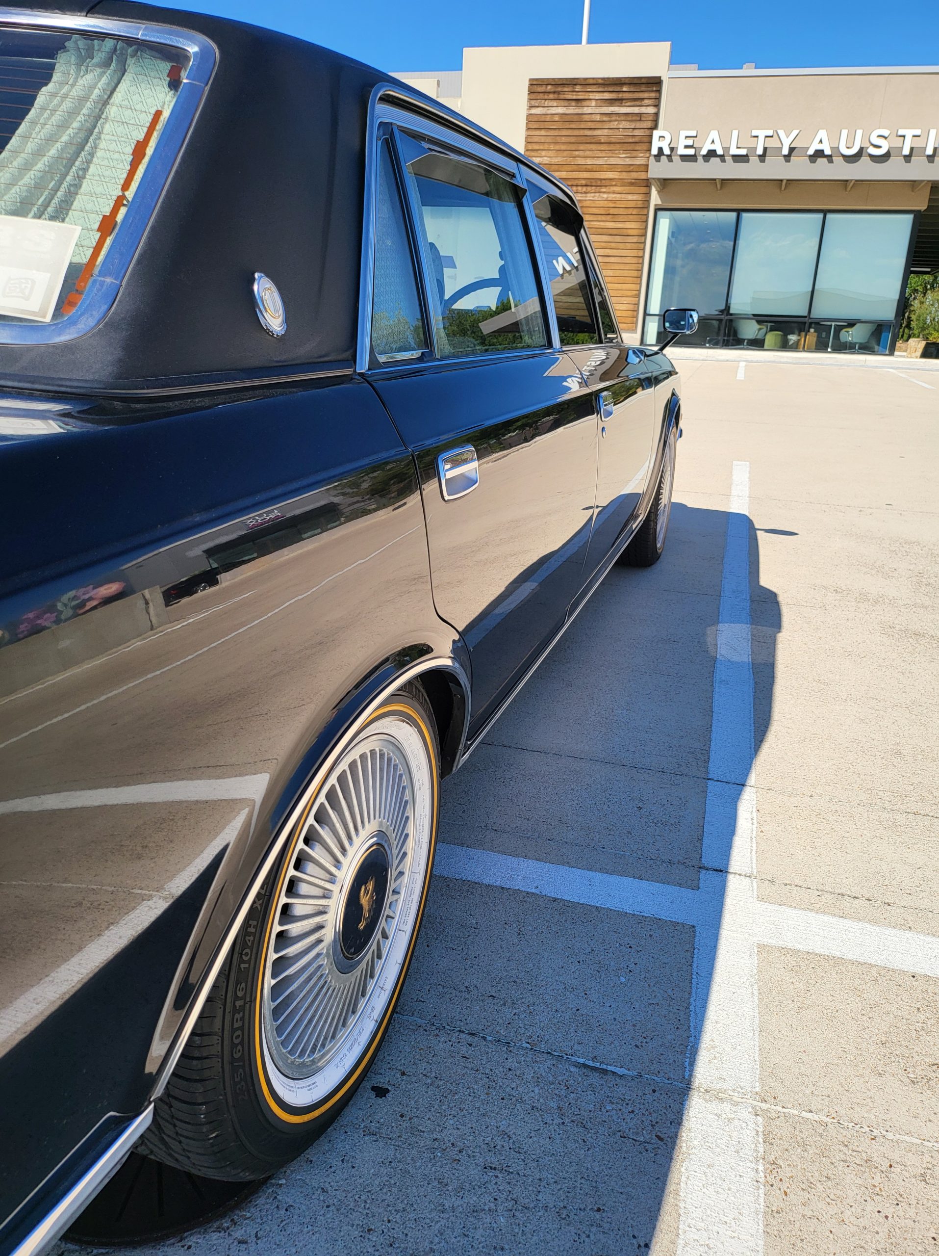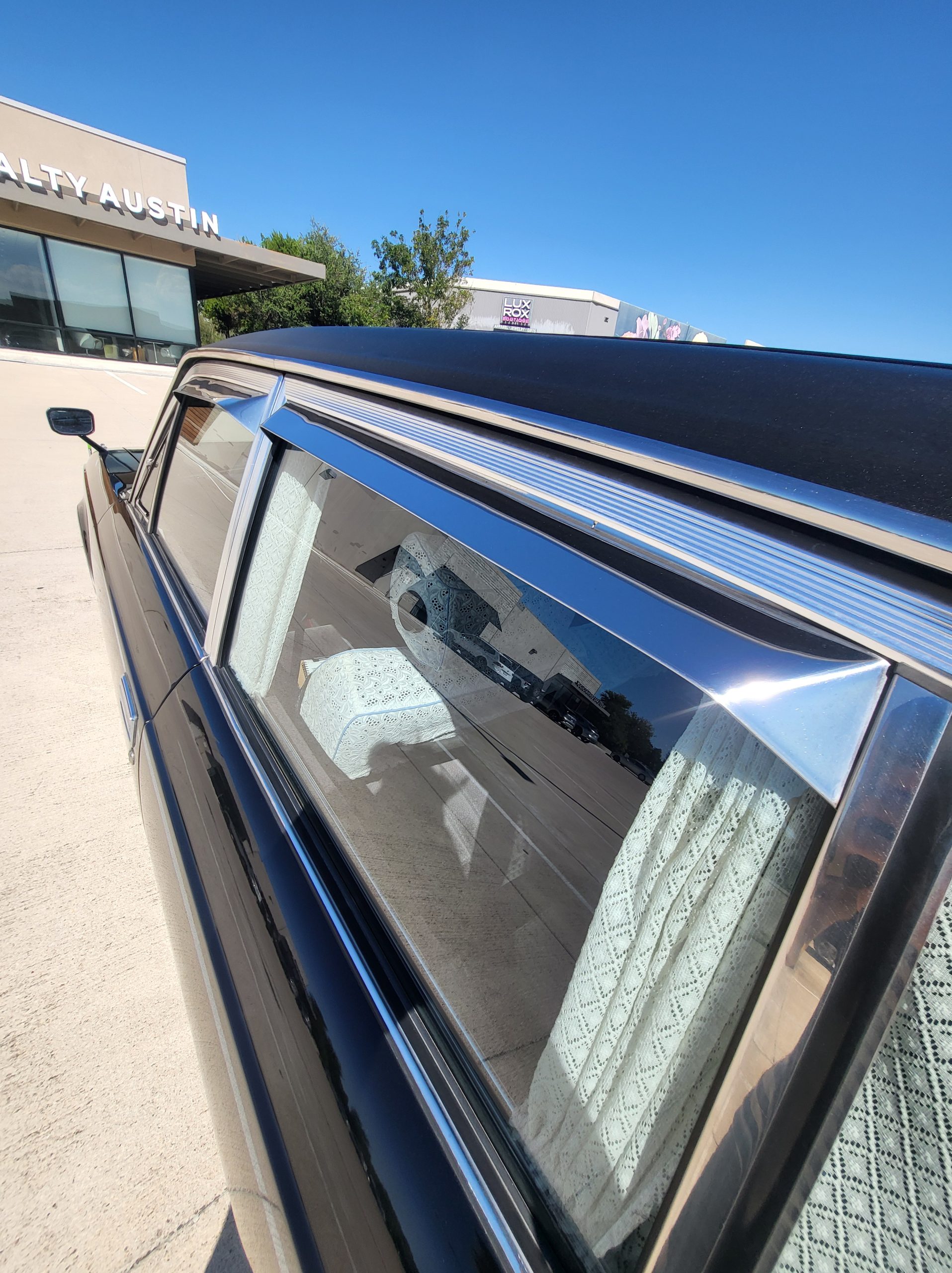 Notable things here are the illuminated parking pole, the vinyl roof (extremely rare), also this is a long wheel base model. This also shows the custom grill (have the stock one also if you prefer), as well as the polished stainless rain visors (also very rare and doubly so for long wheel base model). This car has the best quality thickest paint I have ever seen in my life. Makes the paint on my old bentley look like a kia. You could cut and buff this car about 200 more times before you made it through the clear. Also car has been ceramic coated around 6 months ago.