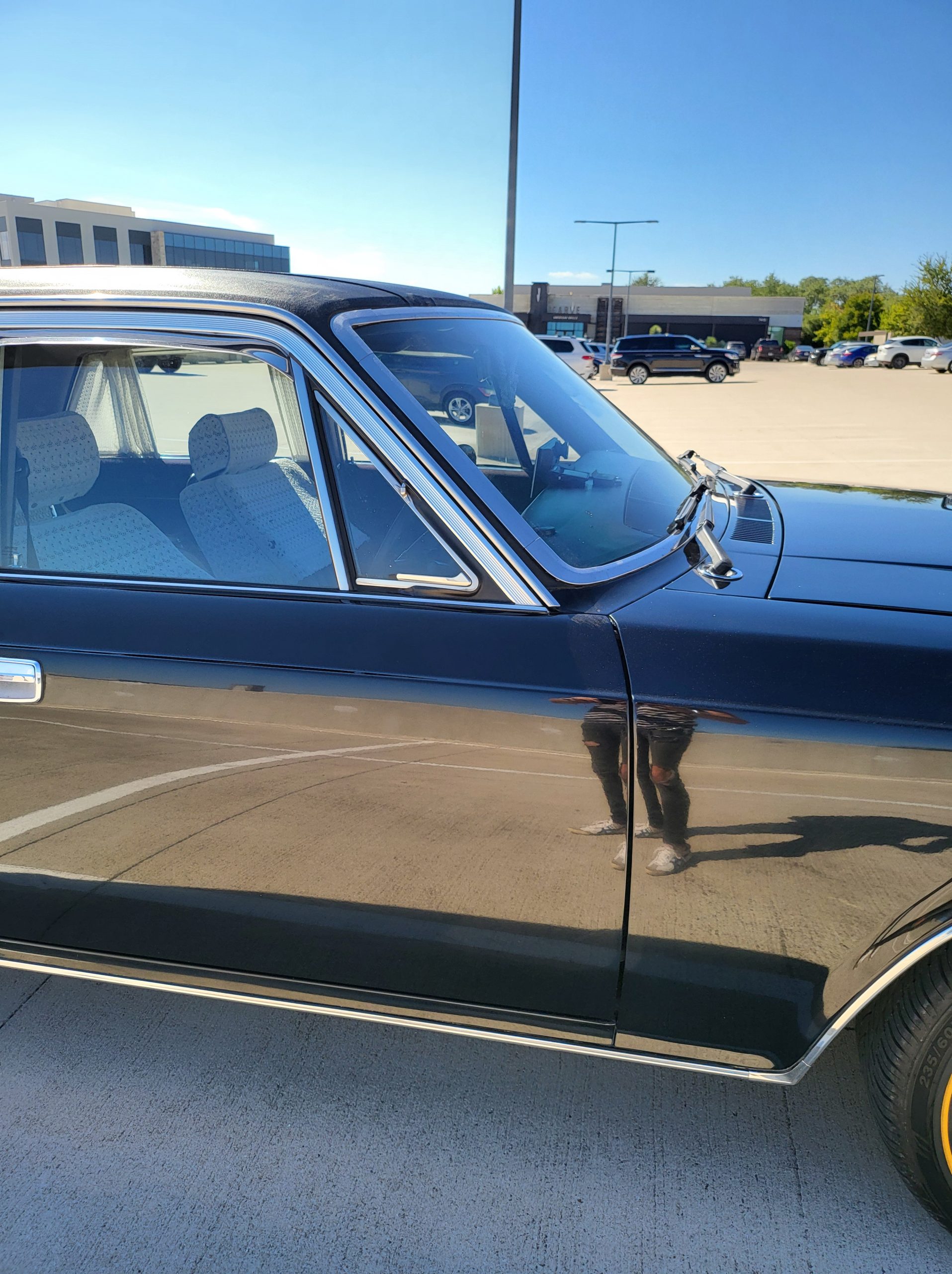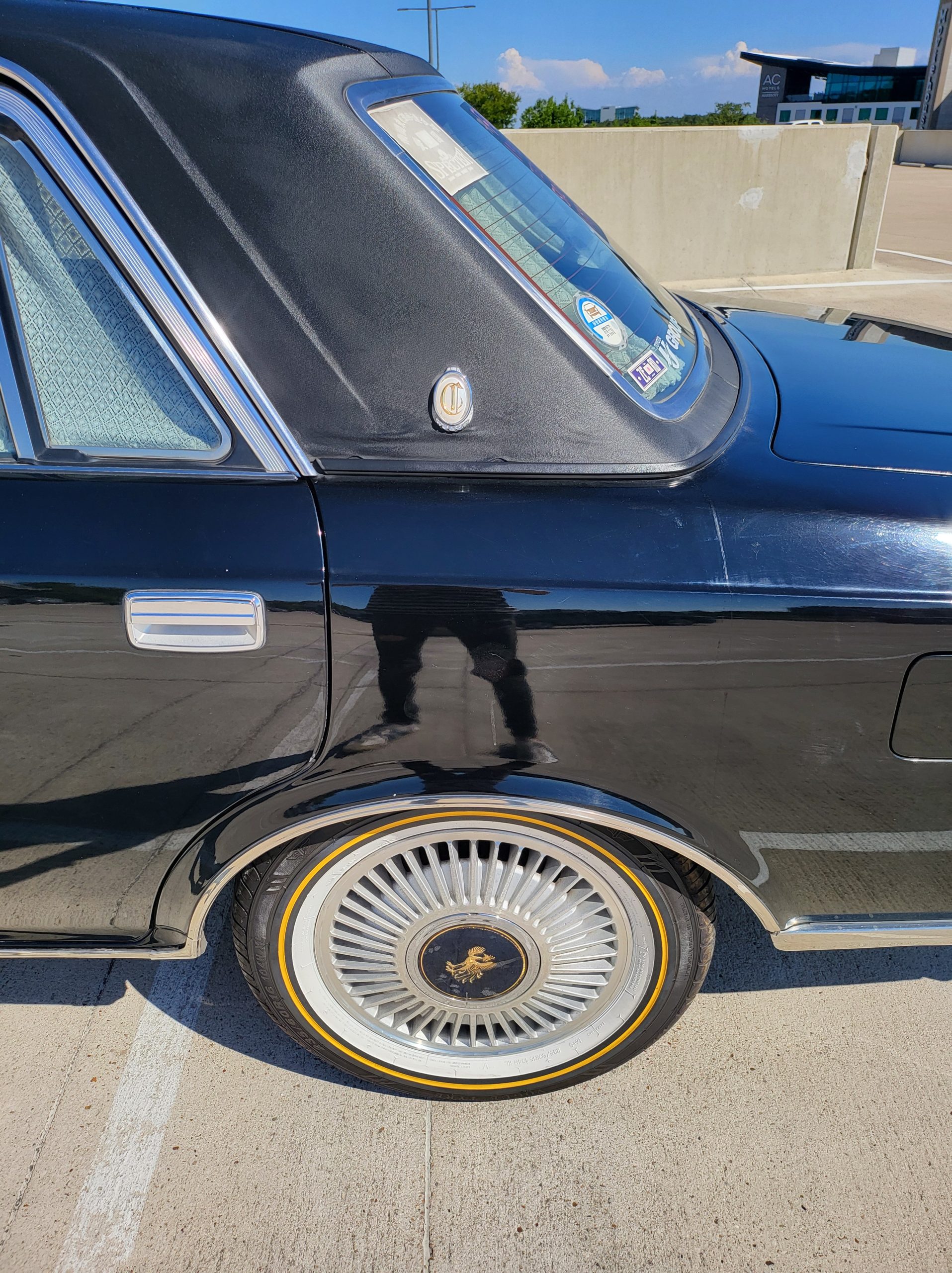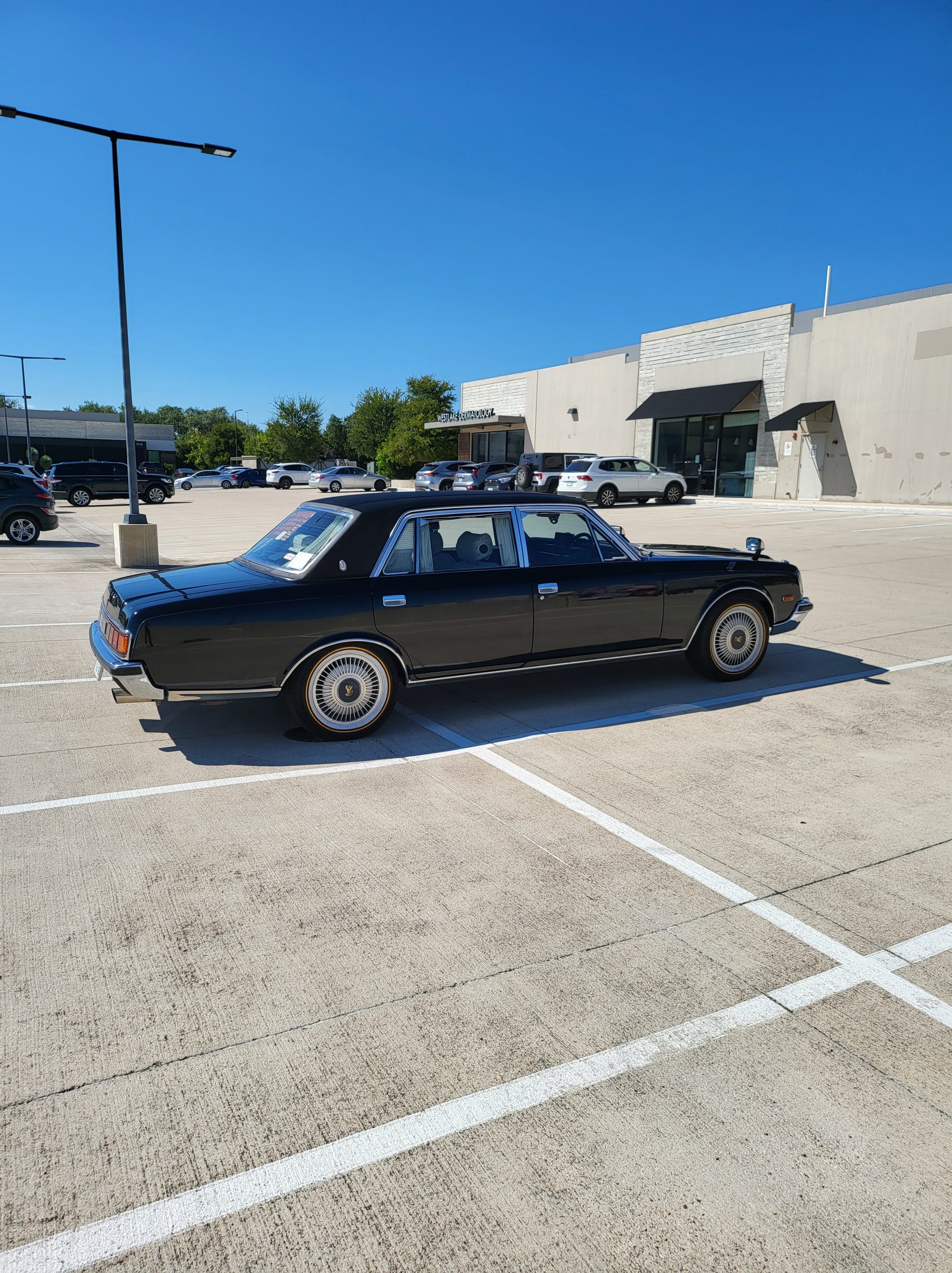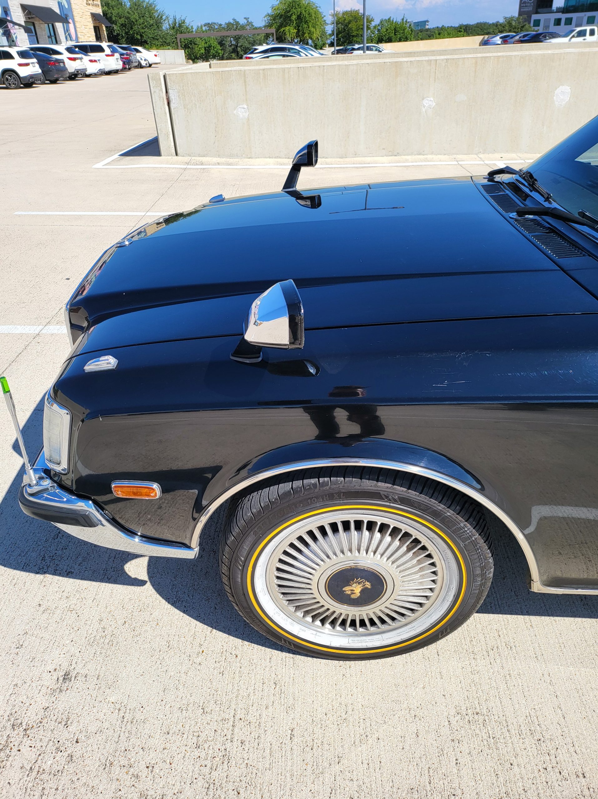 Notable things here are the illuminated parking pole, the vinyl roof (extremely rare), also this is a long wheel base model. This also shows the custom grill (have the stock one also if you prefer), as well as the polished stainless rain visors (also very rare and doubly so for long wheel base model). This car has the best quality thickest paint I have ever seen in my life. Makes the paint on my old bentley look like a kia. You could cut and buff this car about 200 more times before you made it through the clear. Also car has been ceramic coated around 6 months ago.