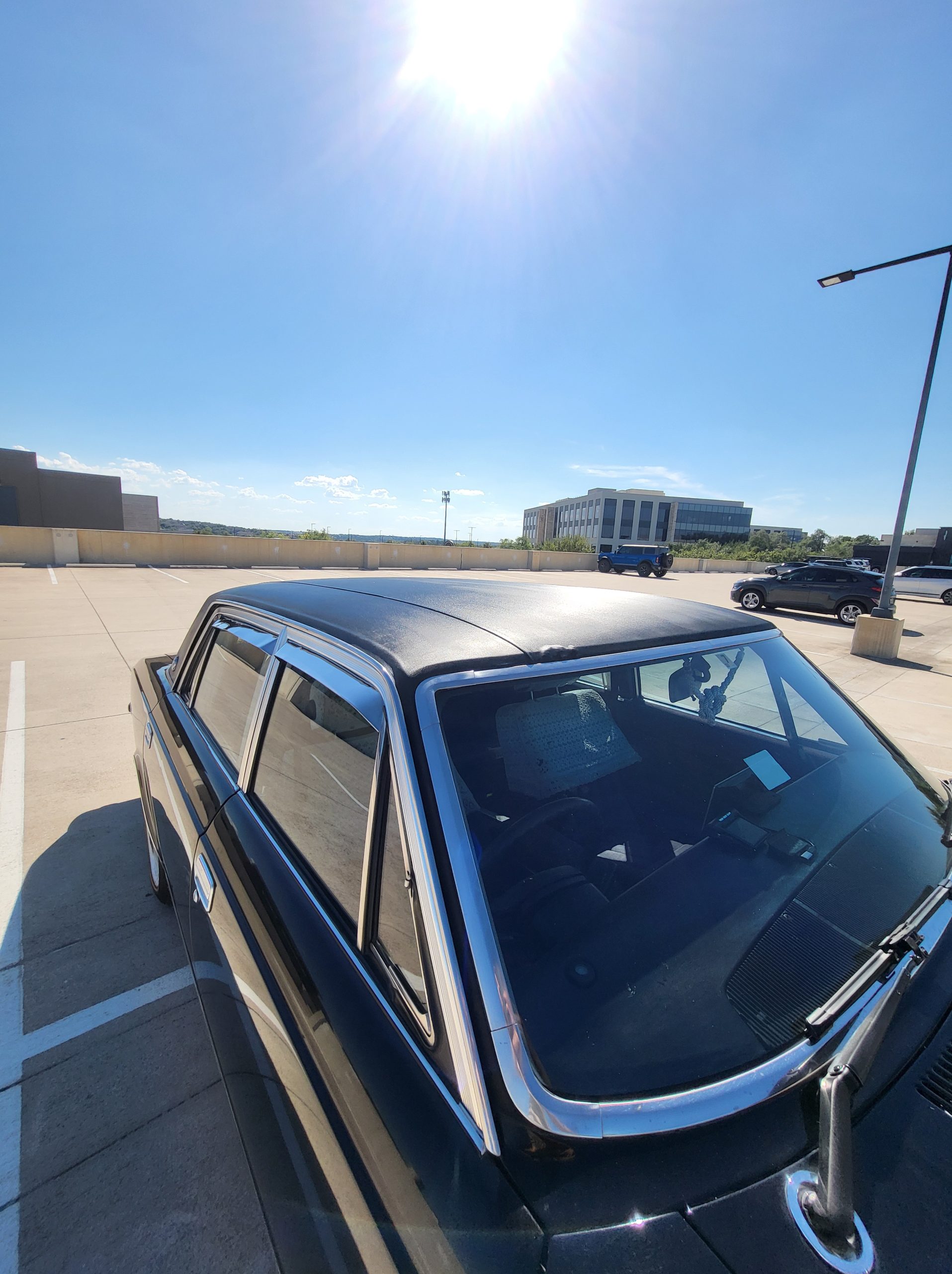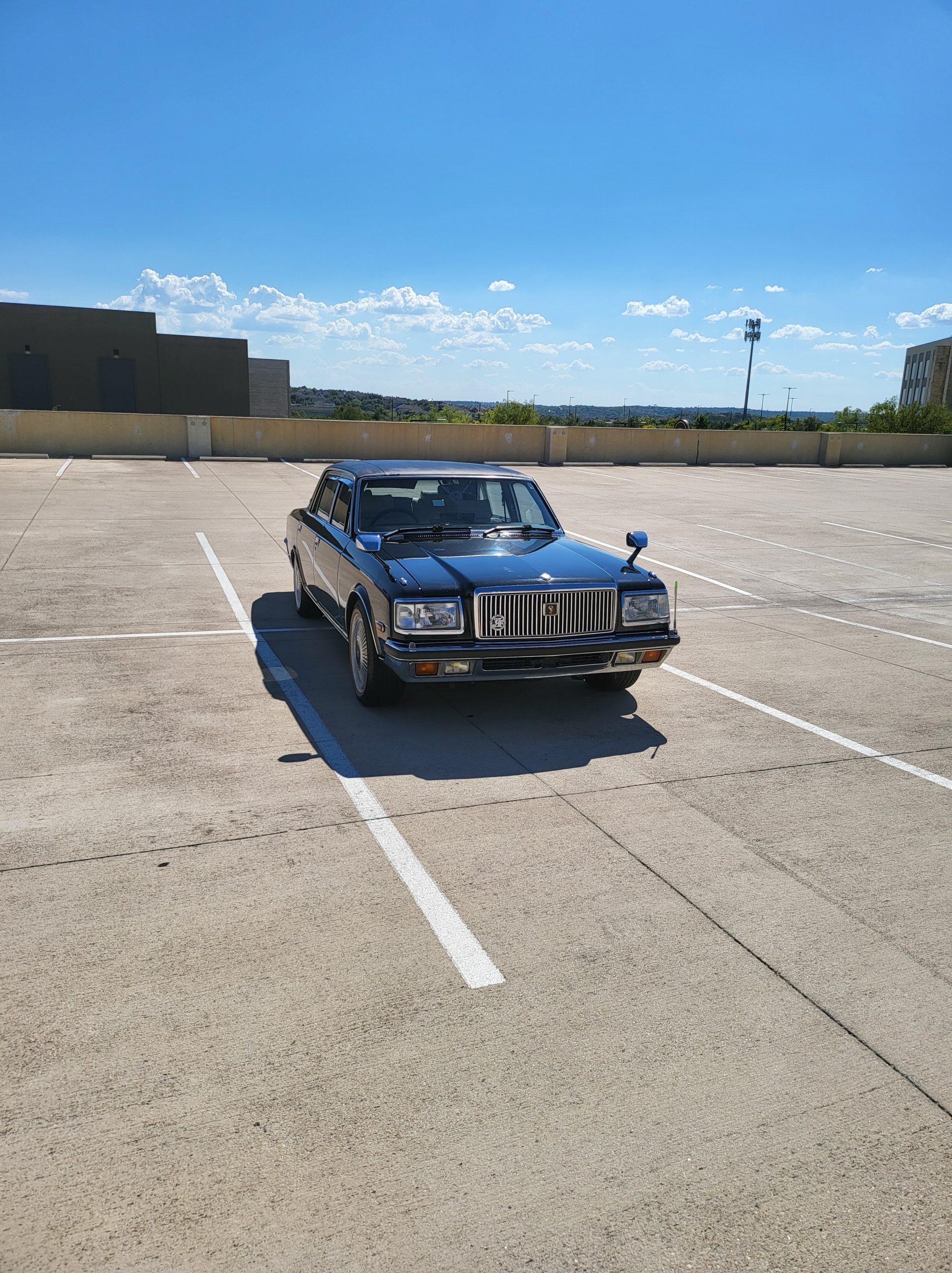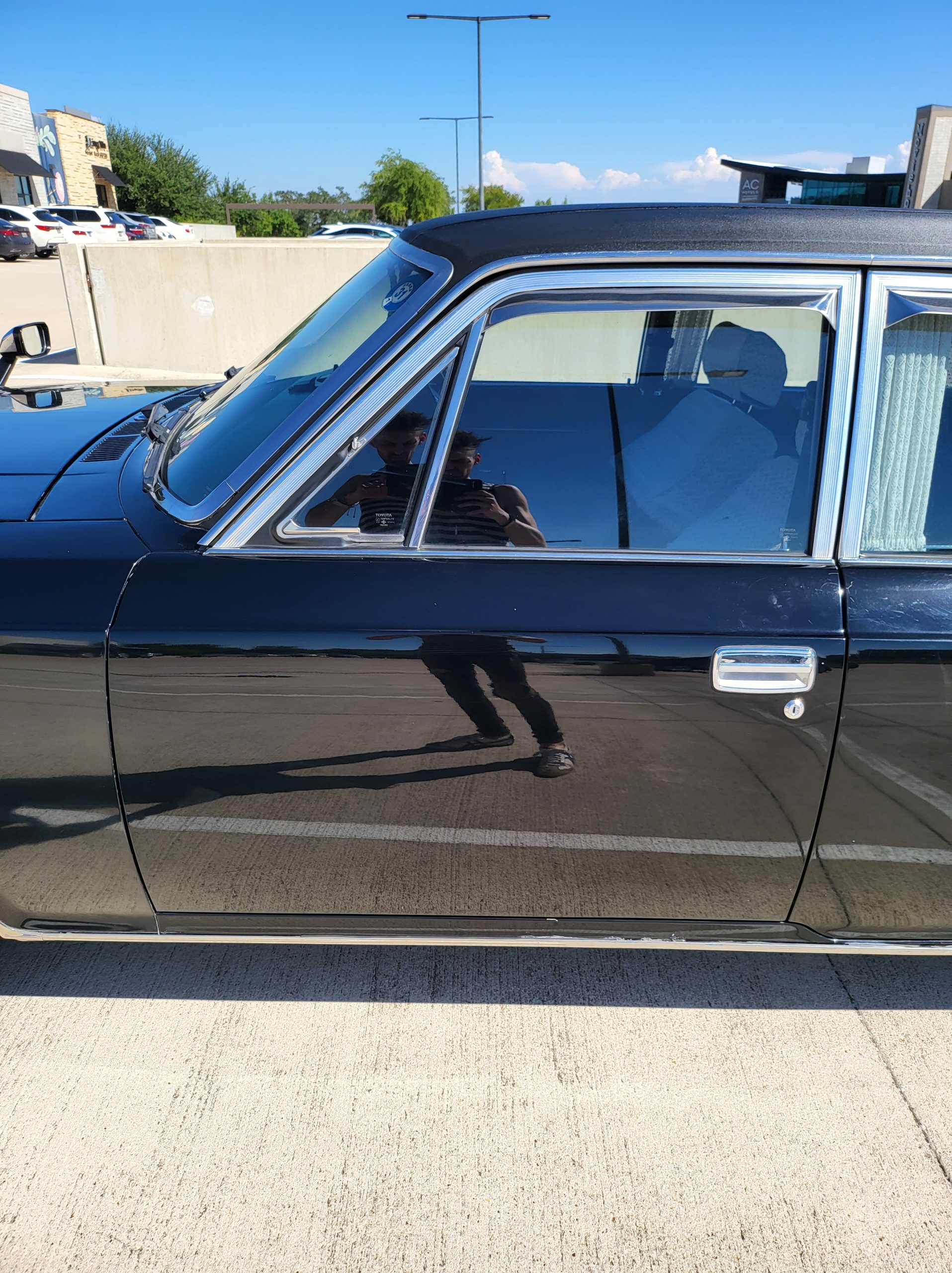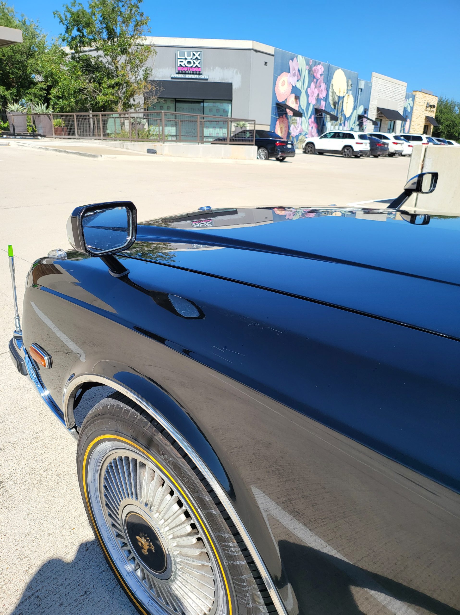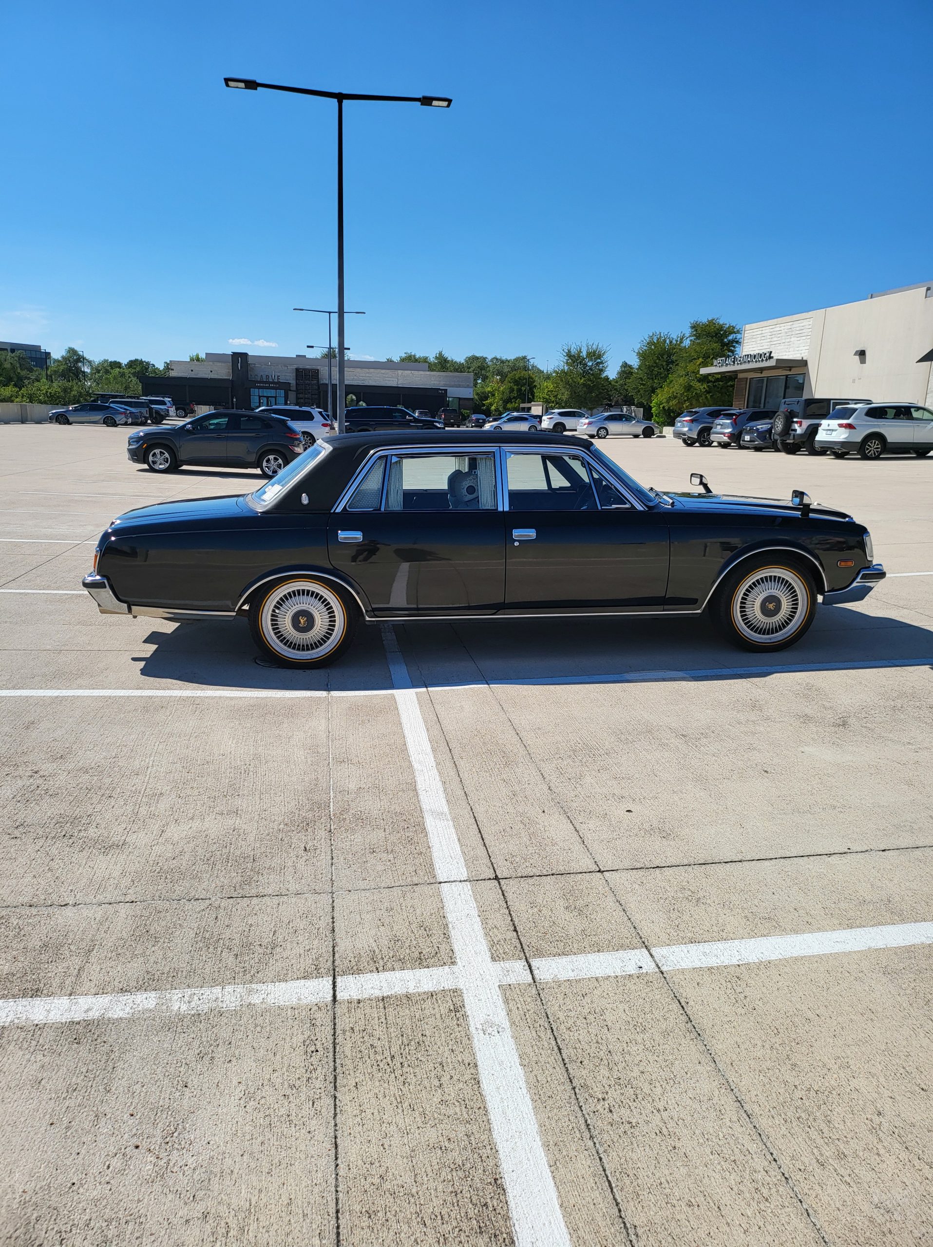 Notable things here are the illuminated parking pole, the vinyl roof (extremely rare), also this is a long wheel base model. This also shows the custom grill (have the stock one also if you prefer), as well as the polished stainless rain visors (also very rare and doubly so for long wheel base model). This car has the best quality thickest paint I have ever seen in my life. Makes the paint on my old bentley look like a kia. You could cut and buff this car about 200 more times before you made it through the clear. Also car has been ceramic coated around 6 months ago.