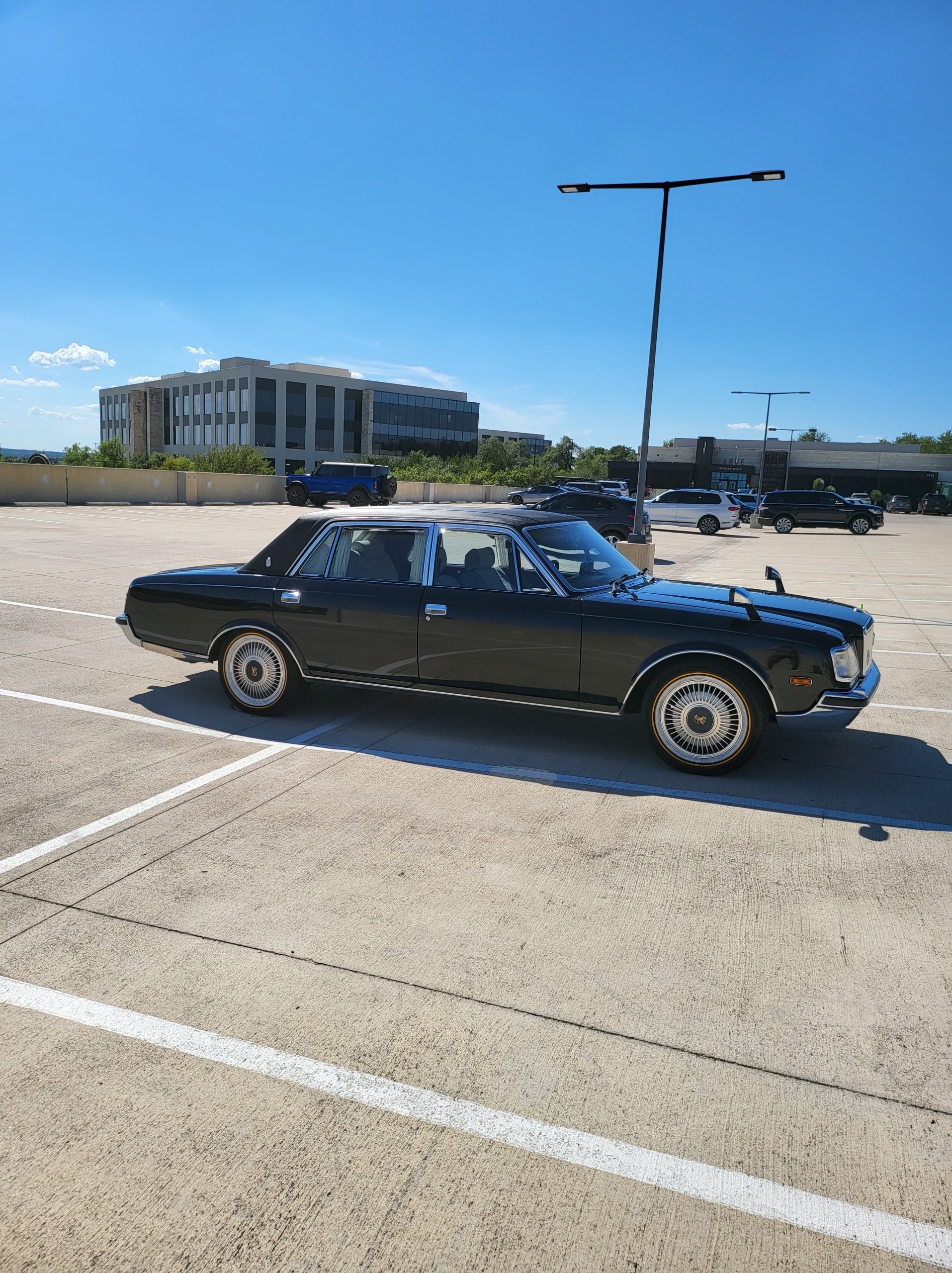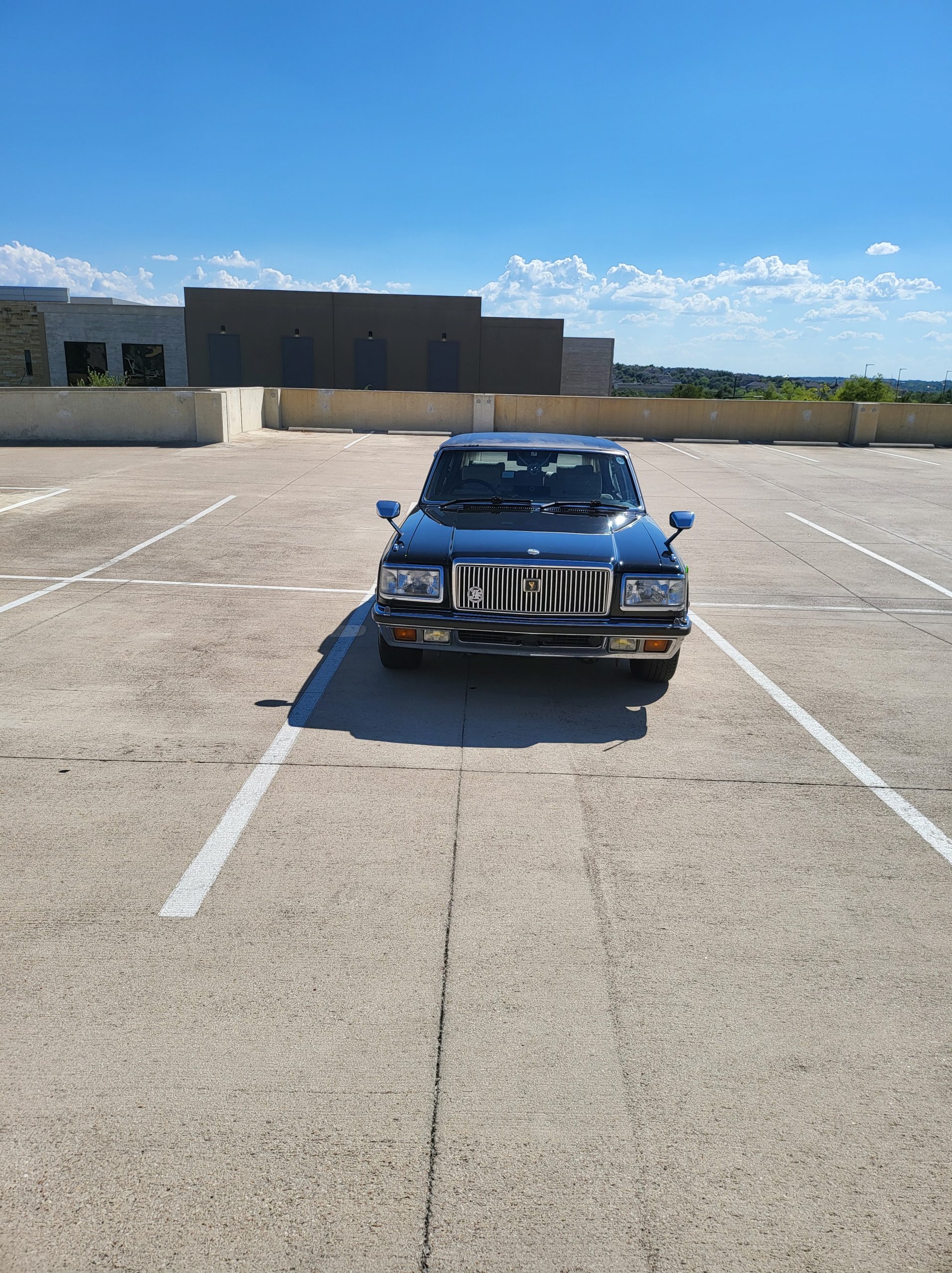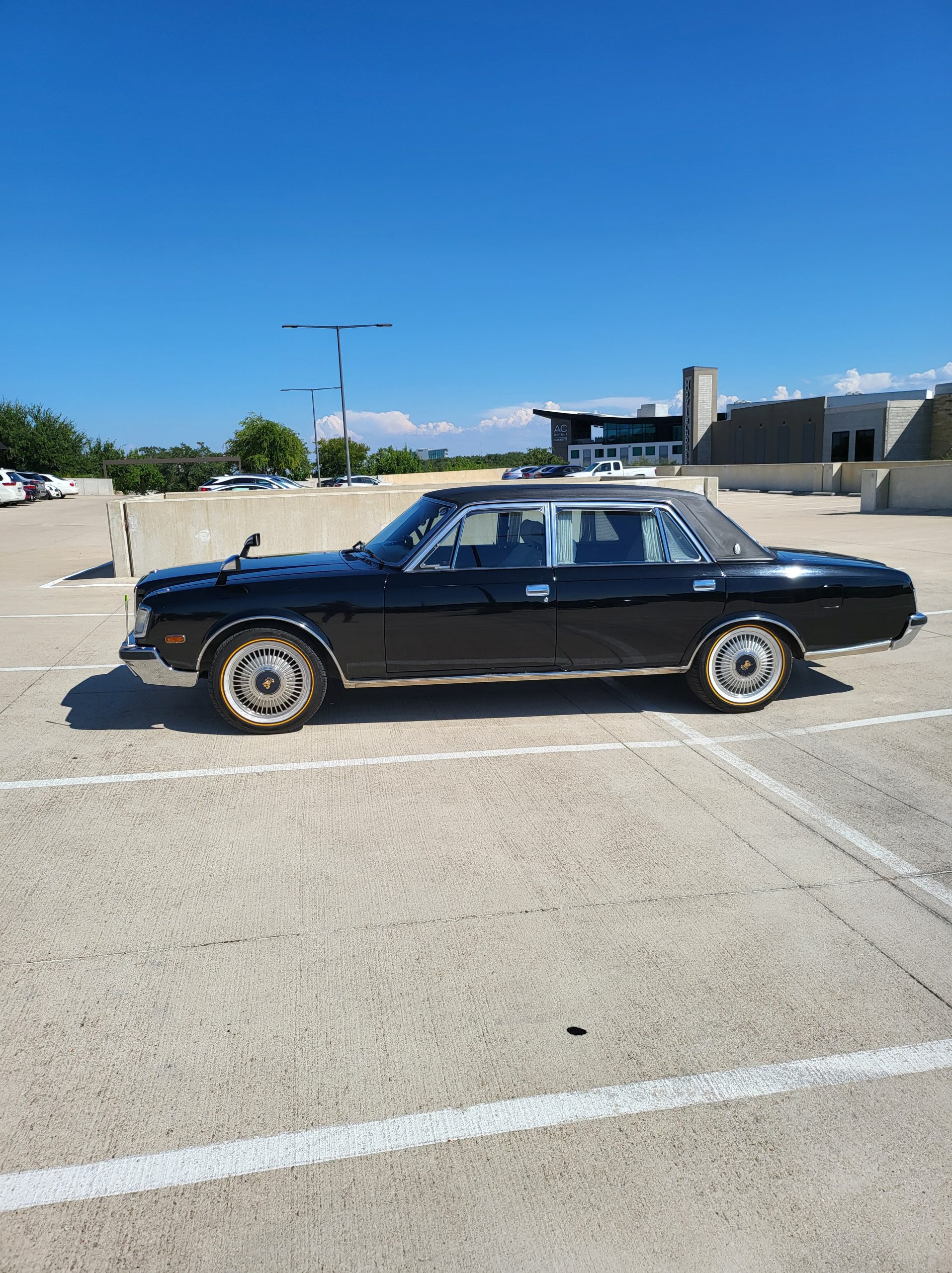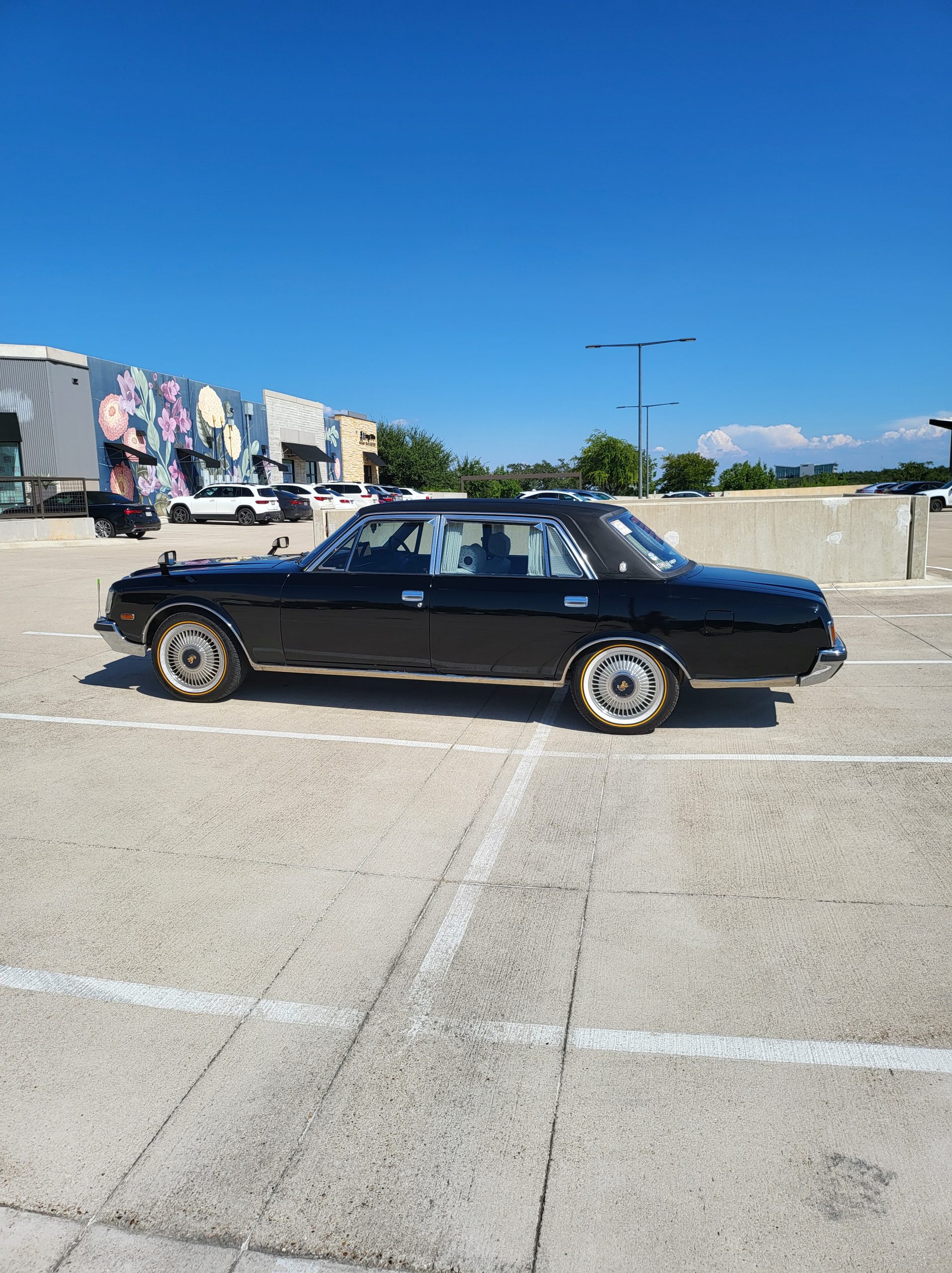 Notable things here are the illuminated parking pole, the vinyl roof (extremely rare), also this is a long wheel base model. This also shows the custom grill (have the stock one also if you prefer), as well as the polished stainless rain visors (also very rare and doubly so for long wheel base model). This car has the best quality thickest paint I have ever seen in my life. Makes the paint on my old bentley look like a kia. You could cut and buff this car about 200 more times before you made it through the clear. Also car has been ceramic coated around 6 months ago.