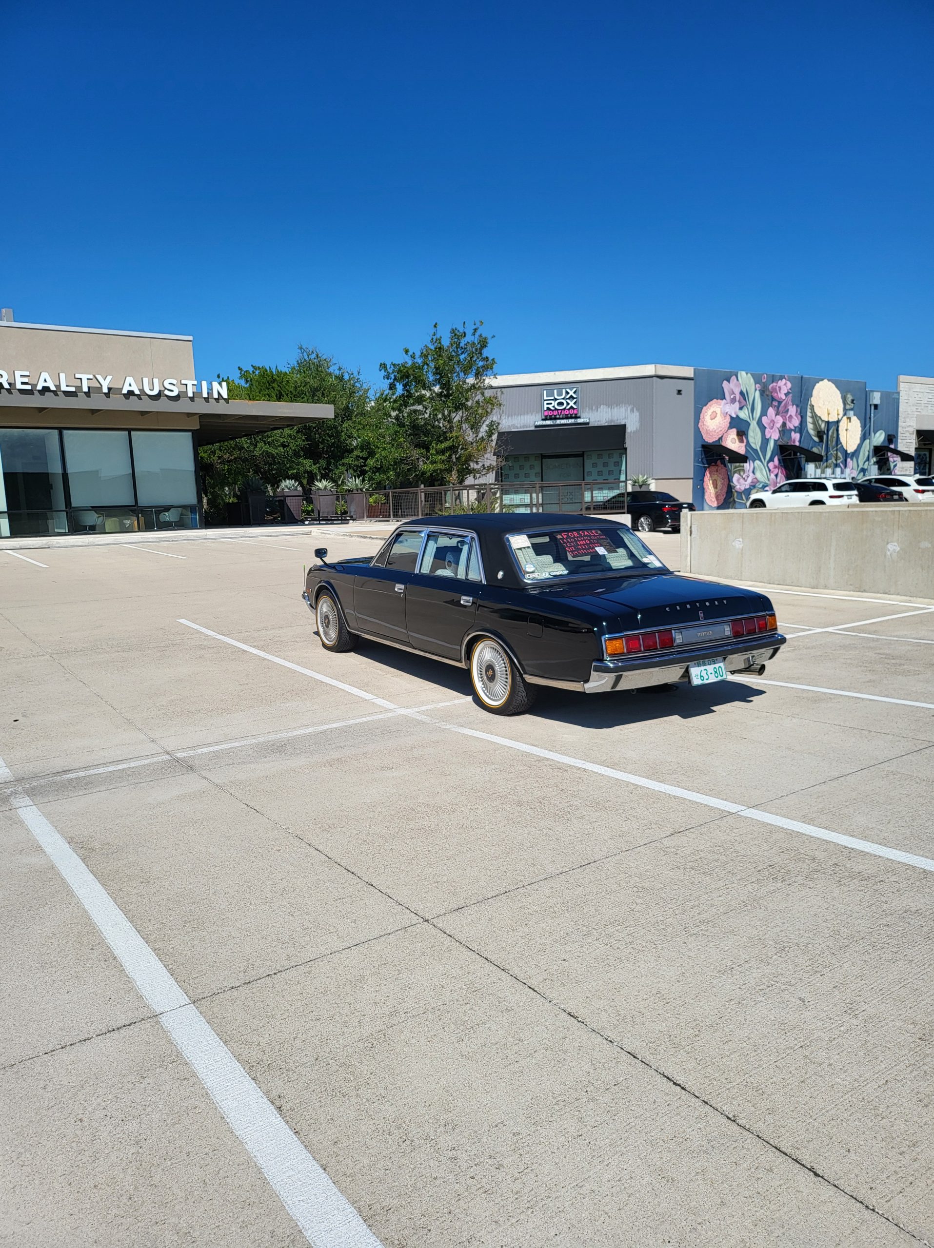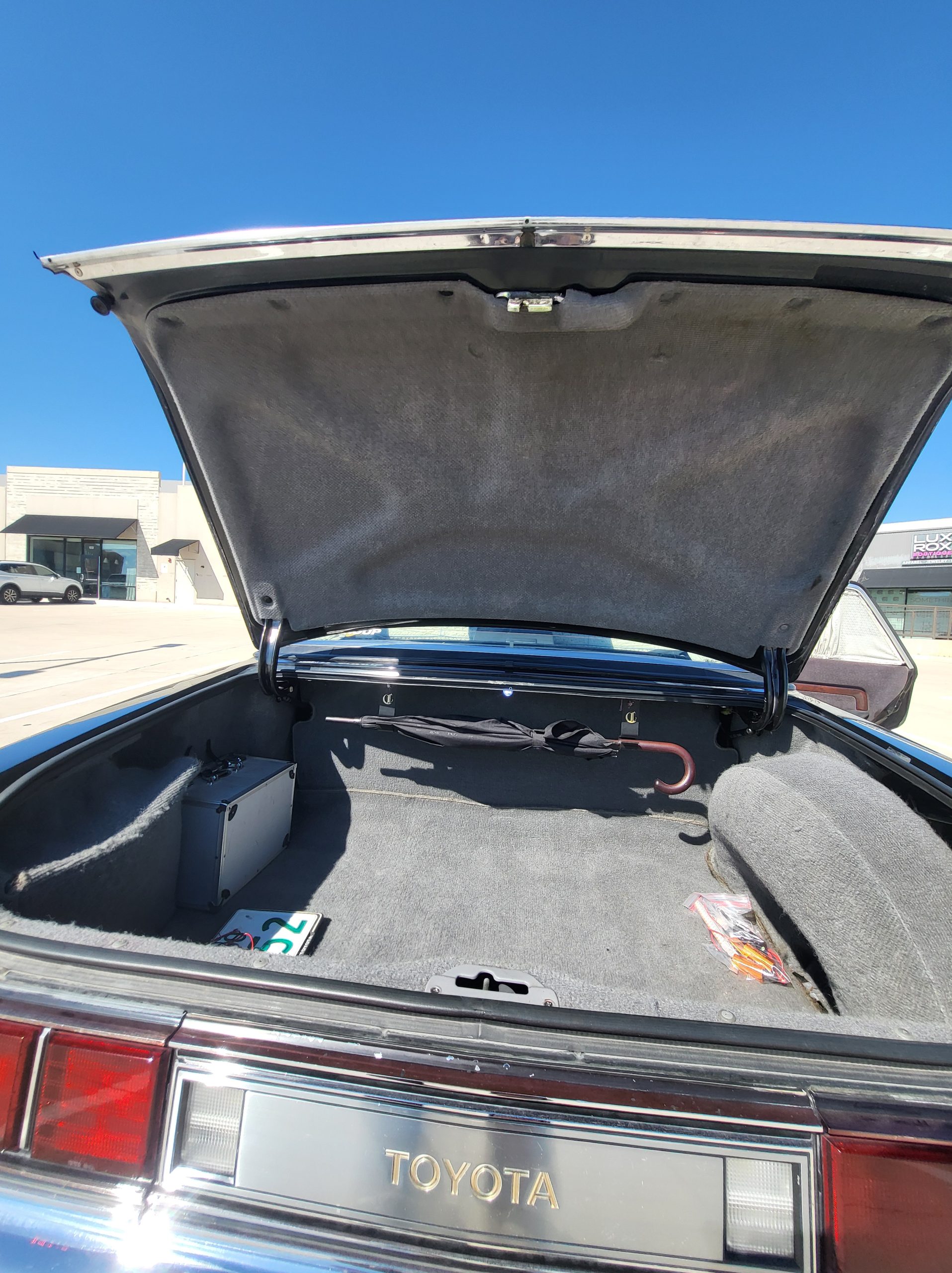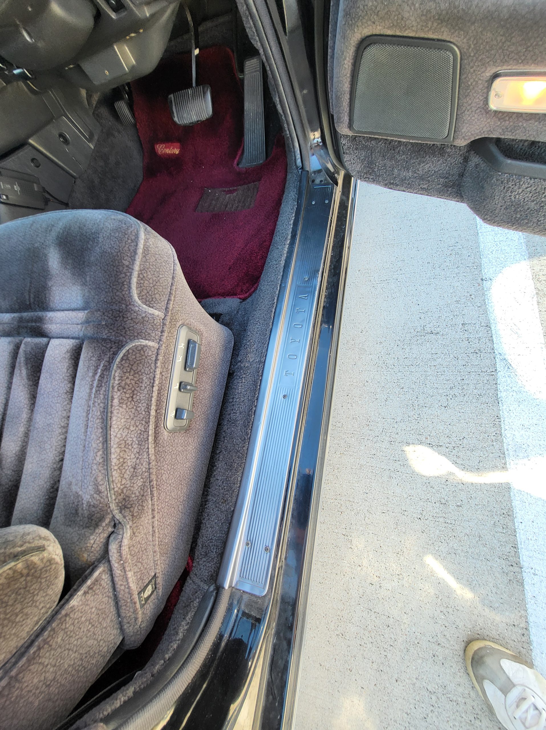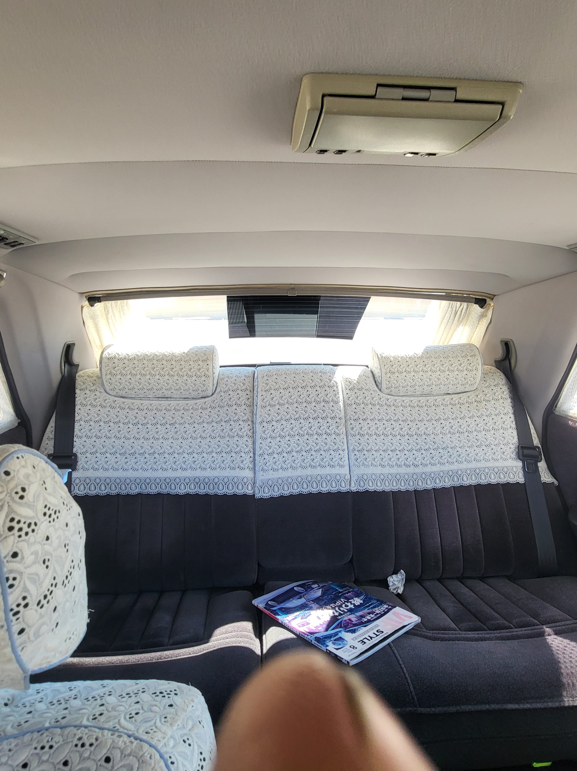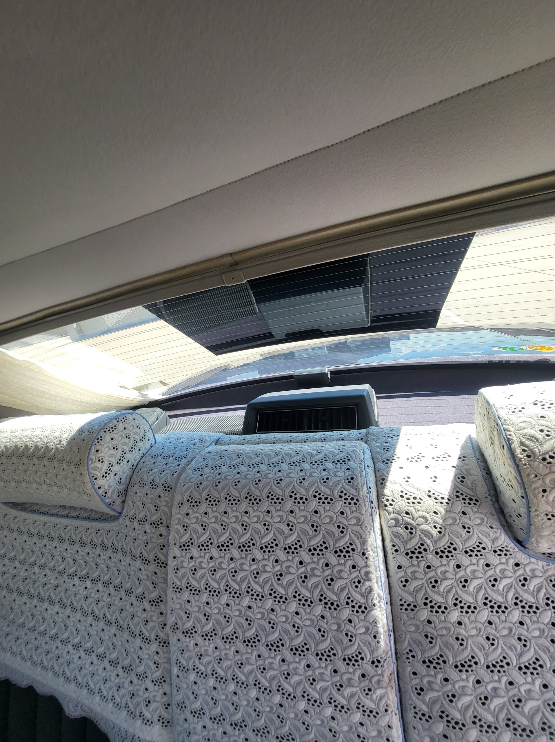 Had to buy 5 head units to find one where the tape deck still works. Didn’t want to ruin the vibe with a goofy looking aftermarket unit. The bottom slot under the radio is a (extremely rare) car phone unit; it doesn’t do anything but it looks cool. Every seat has it’s own cigarette lighter. All the wood trim that looks like plastic is actually solid blocks of milled burl wood (see the edge of the center pocket), Car is tinted all the way around including the windshiled with super light blue 99% UV blocking heat rejection film; I forget the brand but it was whatever the best one that they sold at the time (not cheap). Interior lace covers and curtains have been freshly dry cleaned. Including a few vintage japanese casettes in the arm rest. Also this shows the controls for the seat massagers, the seat heaters, and the controls for the rear passenger to move up the front seats if they choose. There are some cigarette burns on the driver A pillar from the previous owner, haven’t been able to source a replacement for that yet but I can help you do this. Gauge cluster works, basically everything works perfect. Couple cracks in the lower front kick panel. Head liner is mint. Floor mats are near mint, little bit of wear on the driver mat.