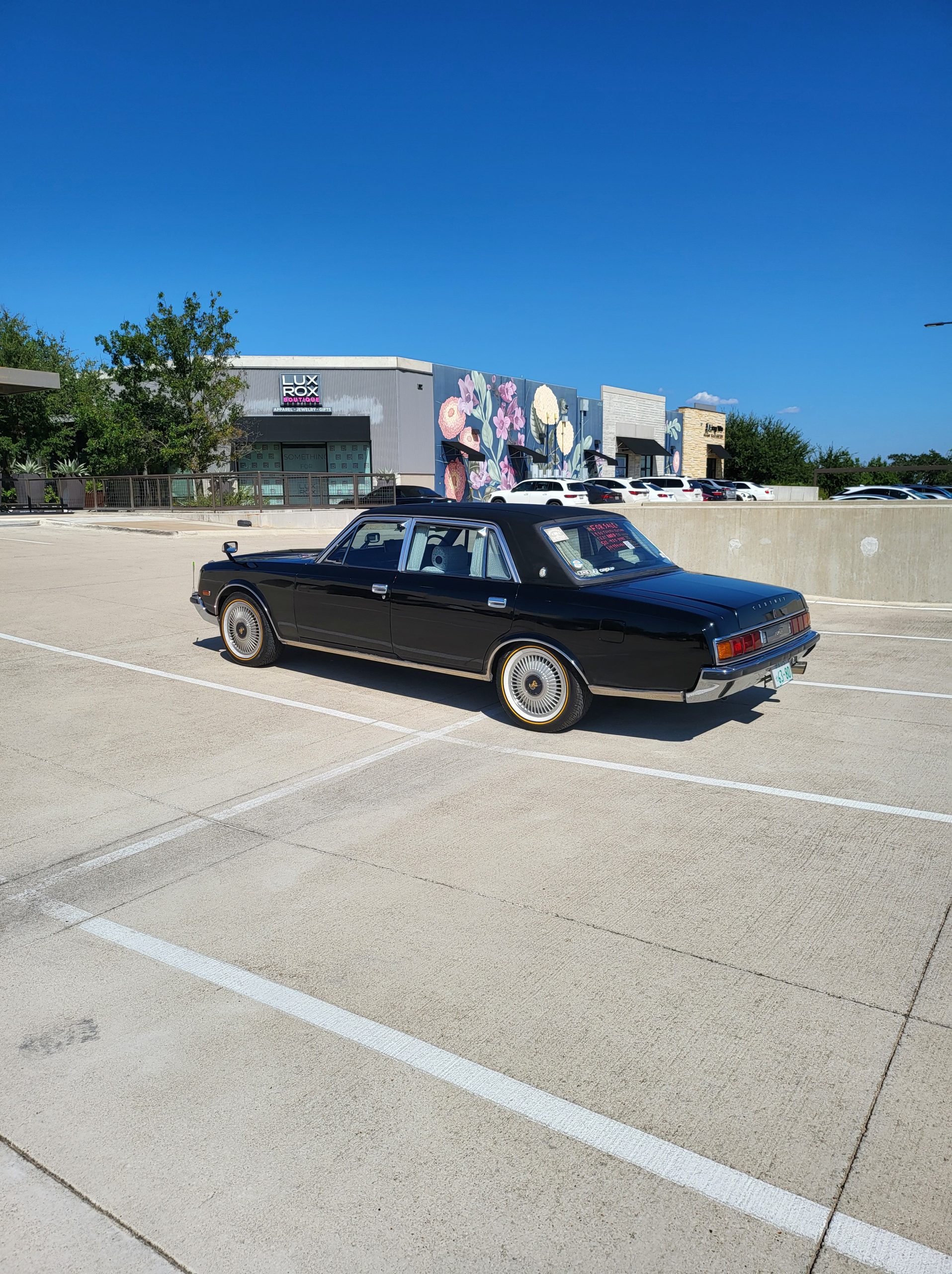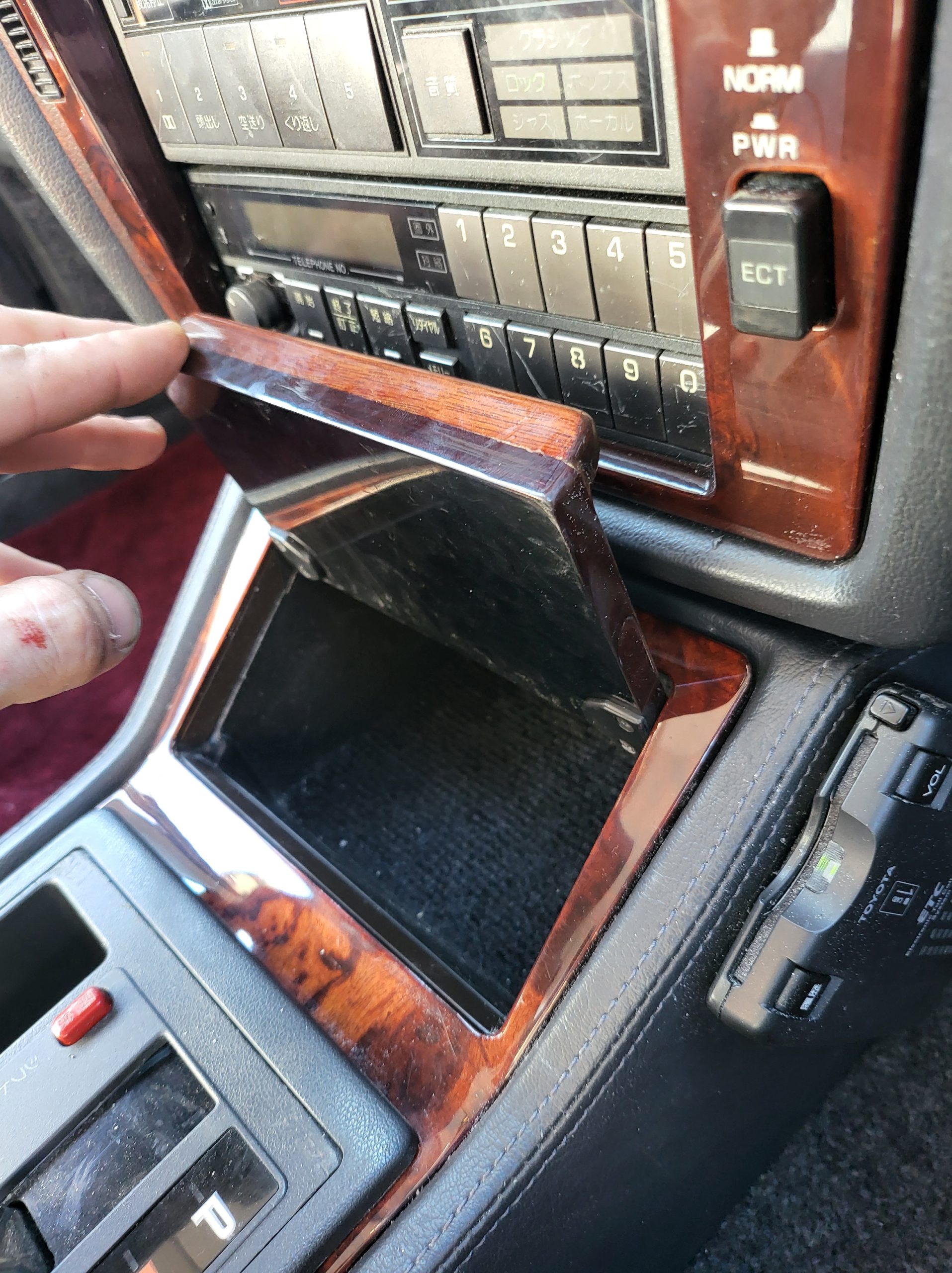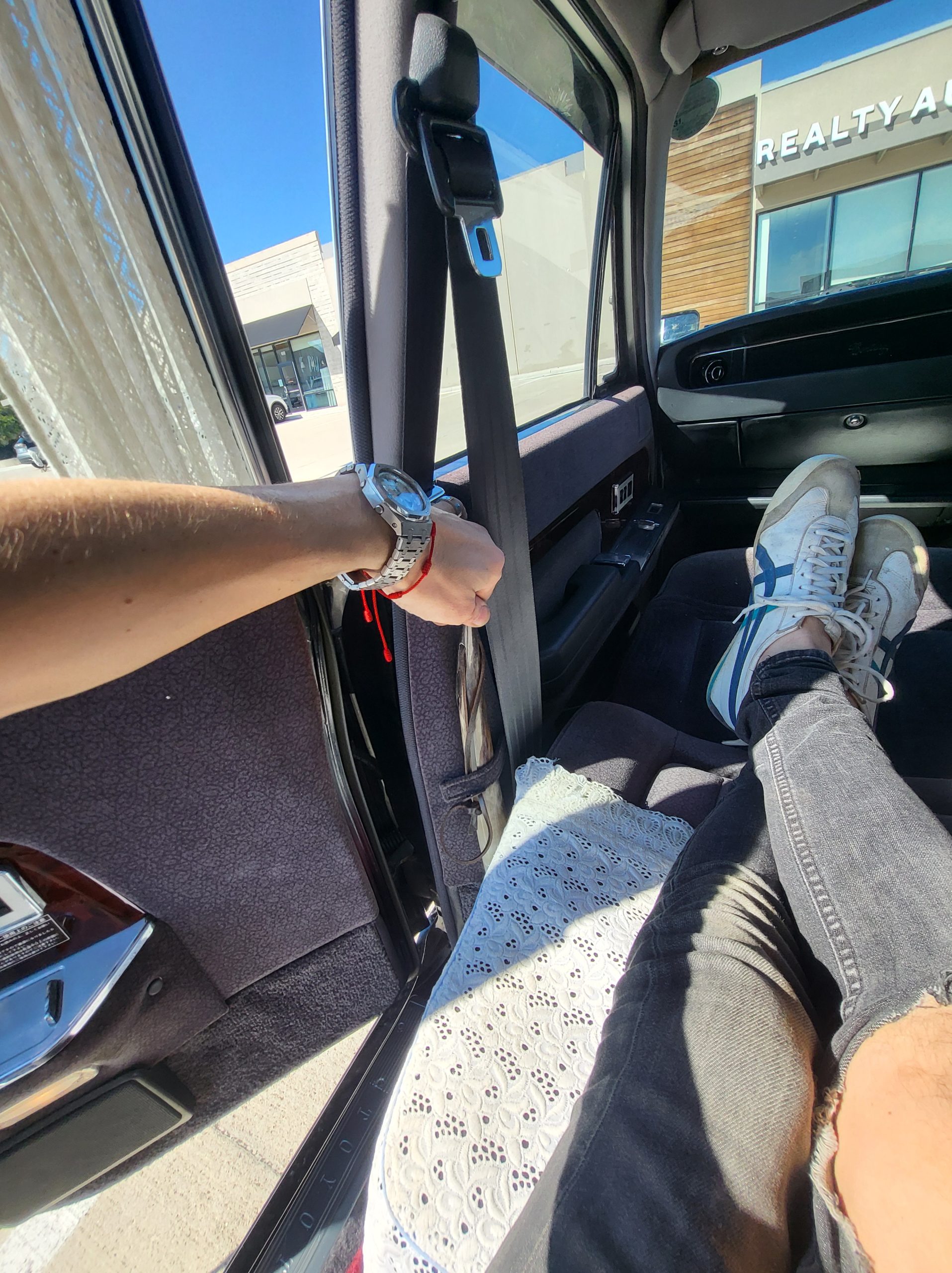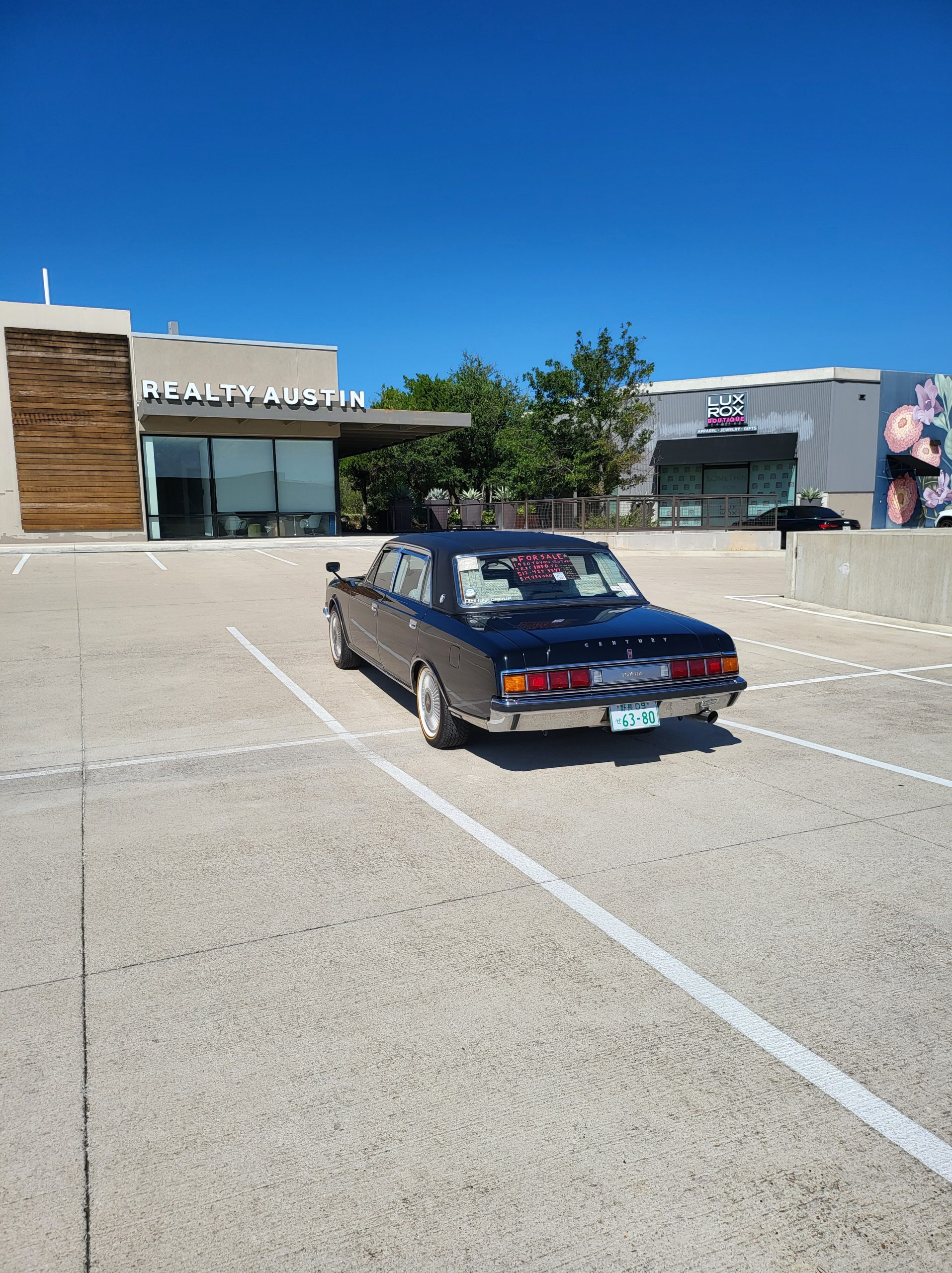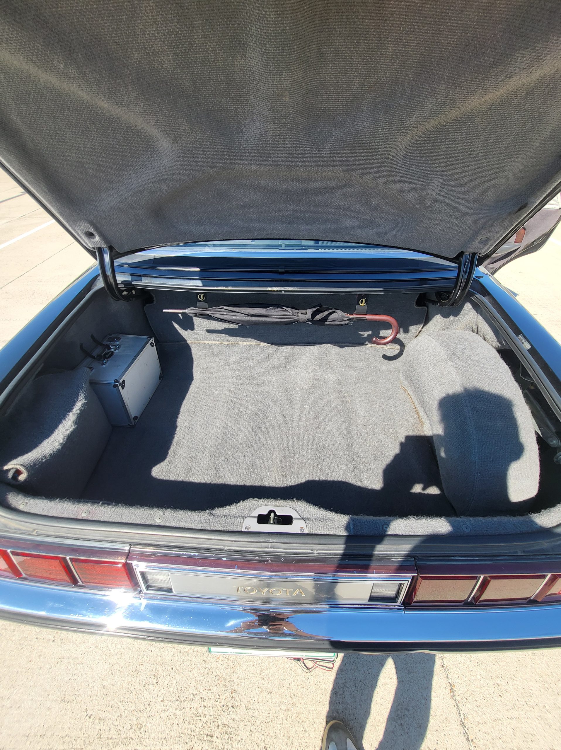 Had to buy 5 head units to find one where the tape deck still works. Didn’t want to ruin the vibe with a goofy looking aftermarket unit. The bottom slot under the radio is a (extremely rare) car phone unit; it doesn’t do anything but it looks cool. Every seat has it’s own cigarette lighter. All the wood trim that looks like plastic is actually solid blocks of milled burl wood (see the edge of the center pocket), Car is tinted all the way around including the windshiled with super light blue 99% UV blocking heat rejection film; I forget the brand but it was whatever the best one that they sold at the time (not cheap). Interior lace covers and curtains have been freshly dry cleaned. Including a few vintage japanese casettes in the arm rest. Also this shows the controls for the seat massagers, the seat heaters, and the controls for the rear passenger to move up the front seats if they choose. There are some cigarette burns on the driver A pillar from the previous owner, haven’t been able to source a replacement for that yet but I can help you do this. Gauge cluster works, basically everything works perfect. Couple cracks in the lower front kick panel. Head liner is mint. Floor mats are near mint, little bit of wear on the driver mat.