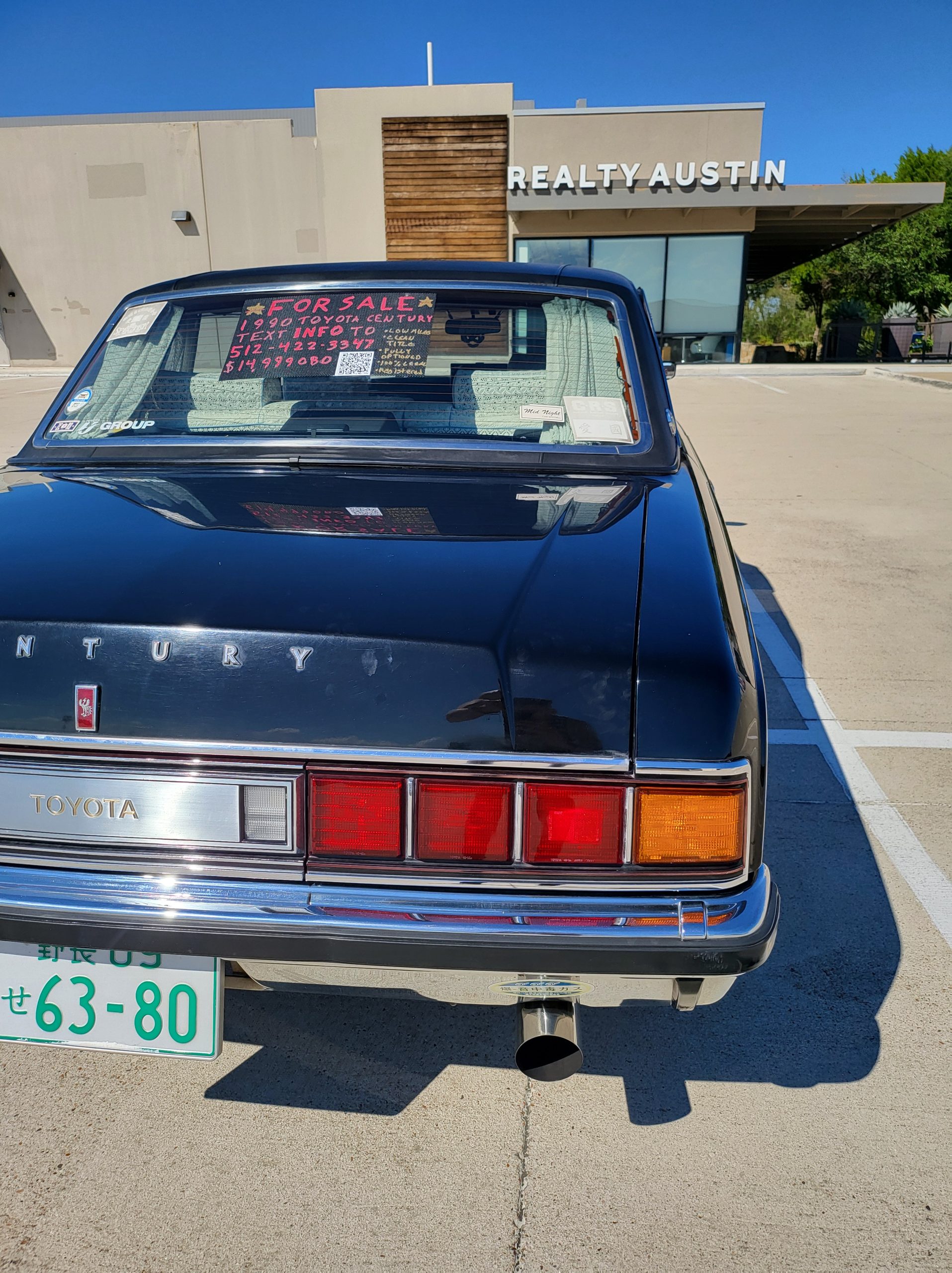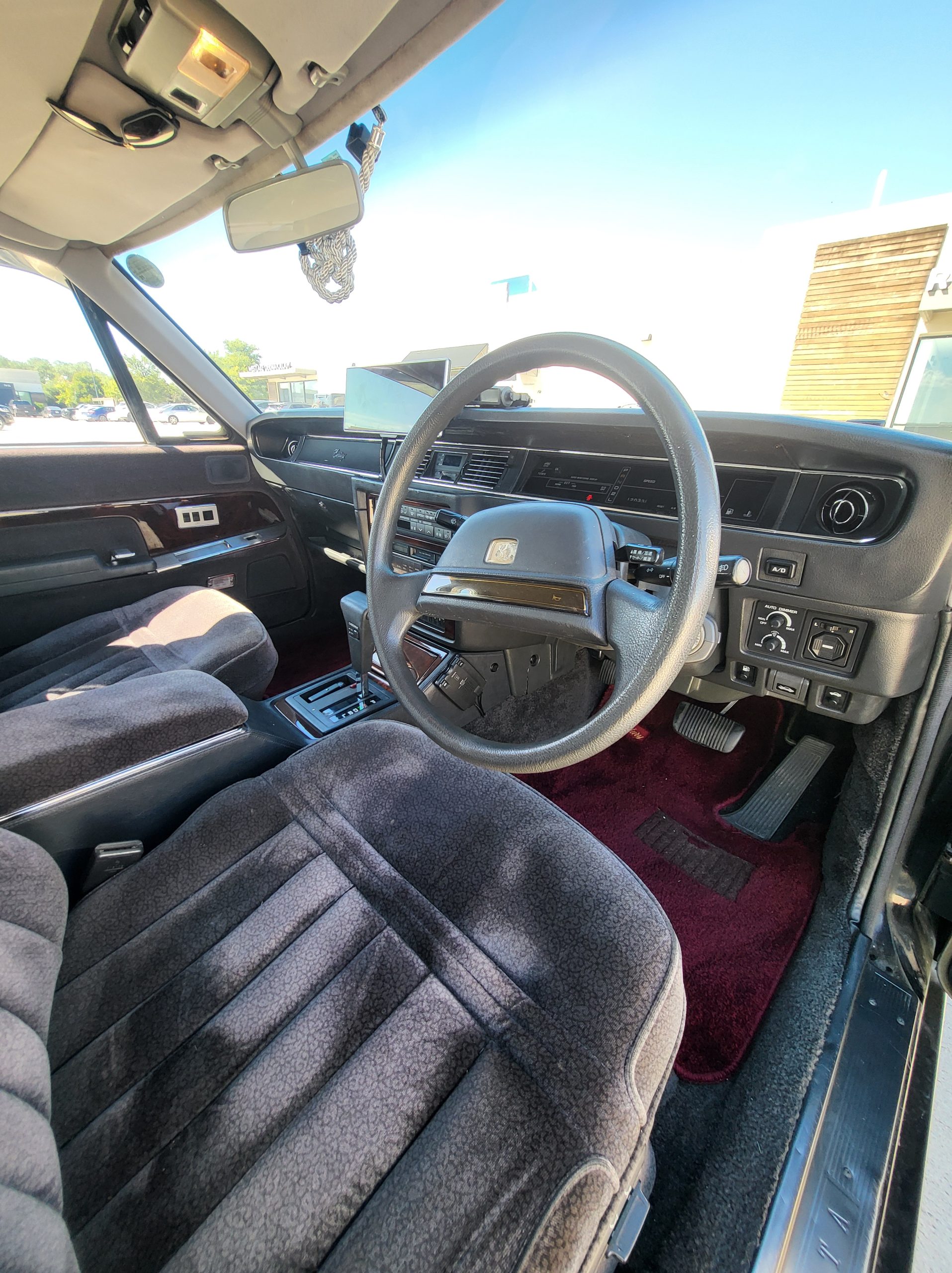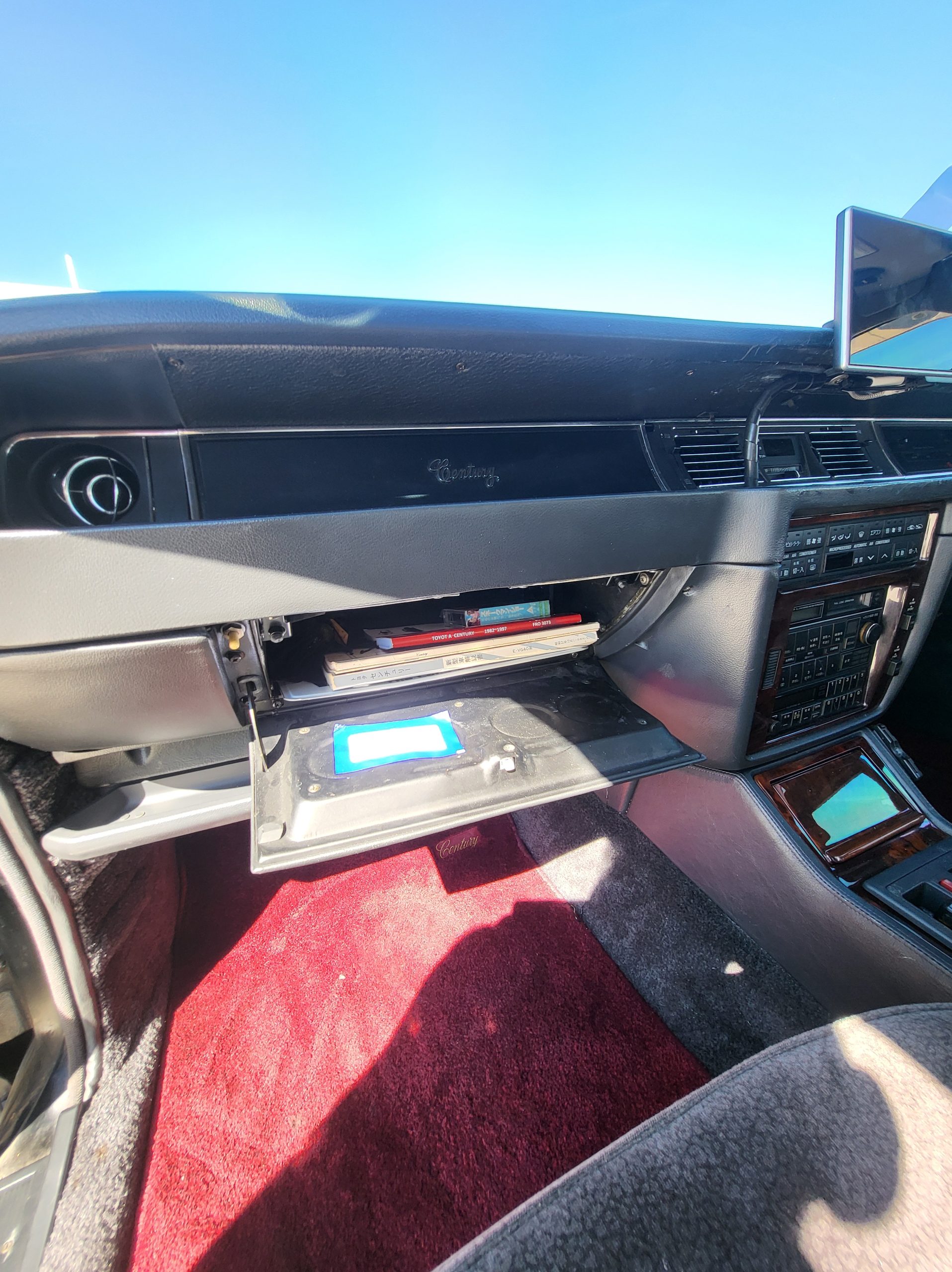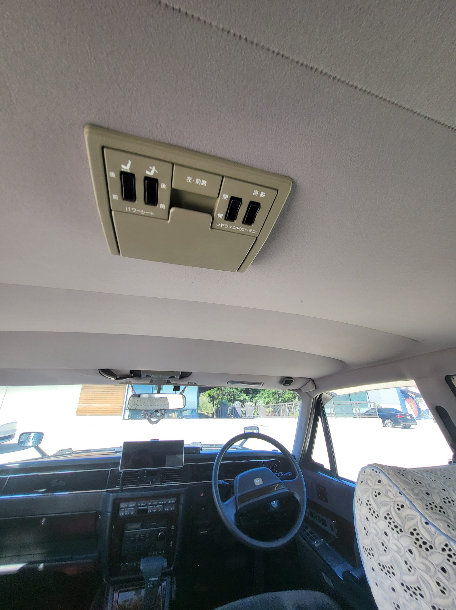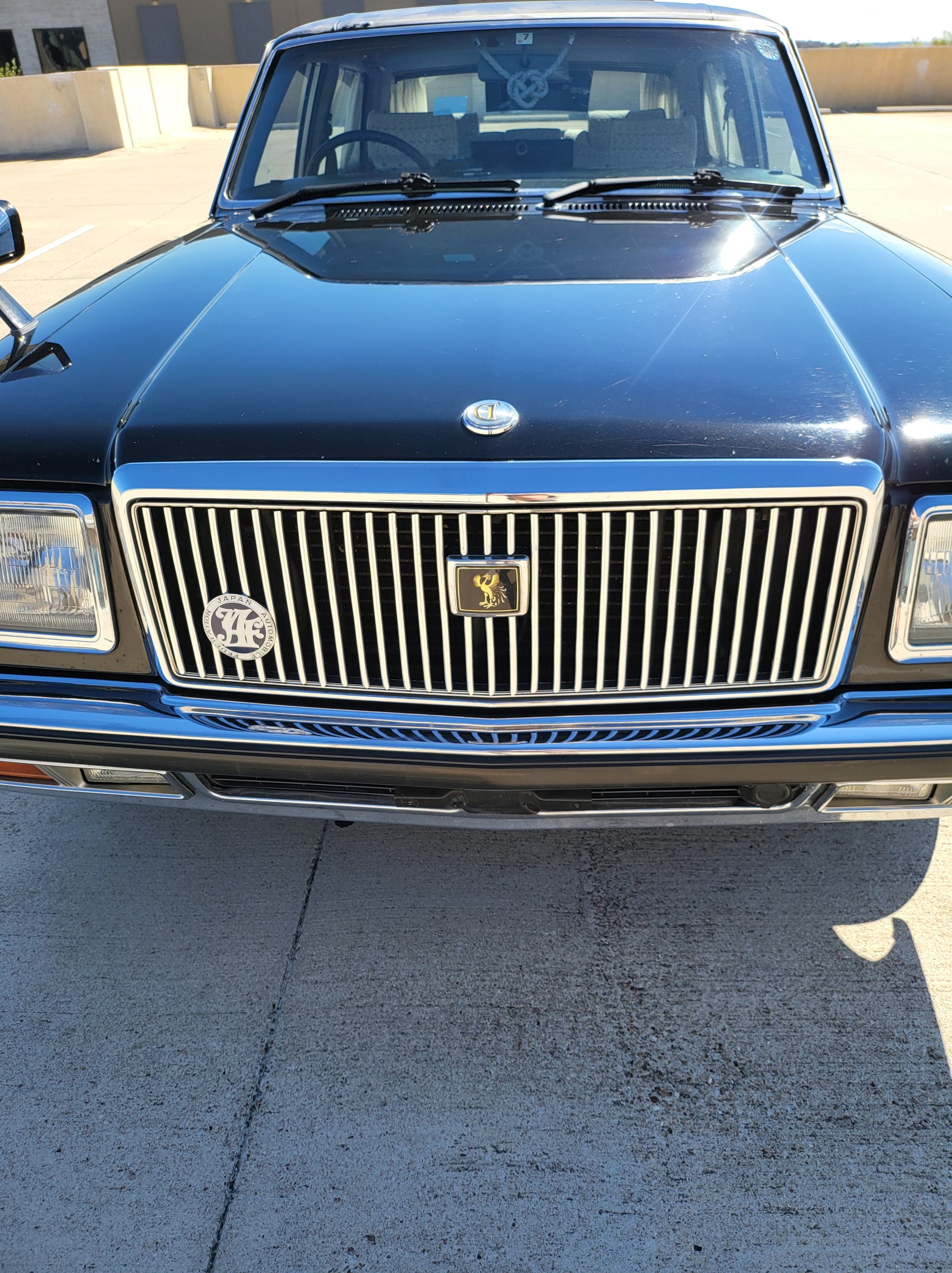 This section tries to highlight some of the more unique features. I’ll explain further as time allows. Rear seat dictaphone, pass-through lounge chair rear seat, rear radio remote control, shoe horn holders, power operated rear curtains, charcoal cigarette filter, champagne box, dual rear subwoofers, illuminated parking pole, heads up display spedometer, lay-flat power seats, power rear seats, seat massagers, Tokyo expressway tollway card reader (speaks to you in japanese), easy access battery charger hookup, trunk umbrella holder, flip down grocery bag racks, YAMATO vanity plate, Factory OEM ostrich feather duster, full size spare tire, stainless rain visors, OEM curtains and upholstery lace covers, 100% virgin wool upholstery from scotland imported to kyoto (the cheaper spec is leather)