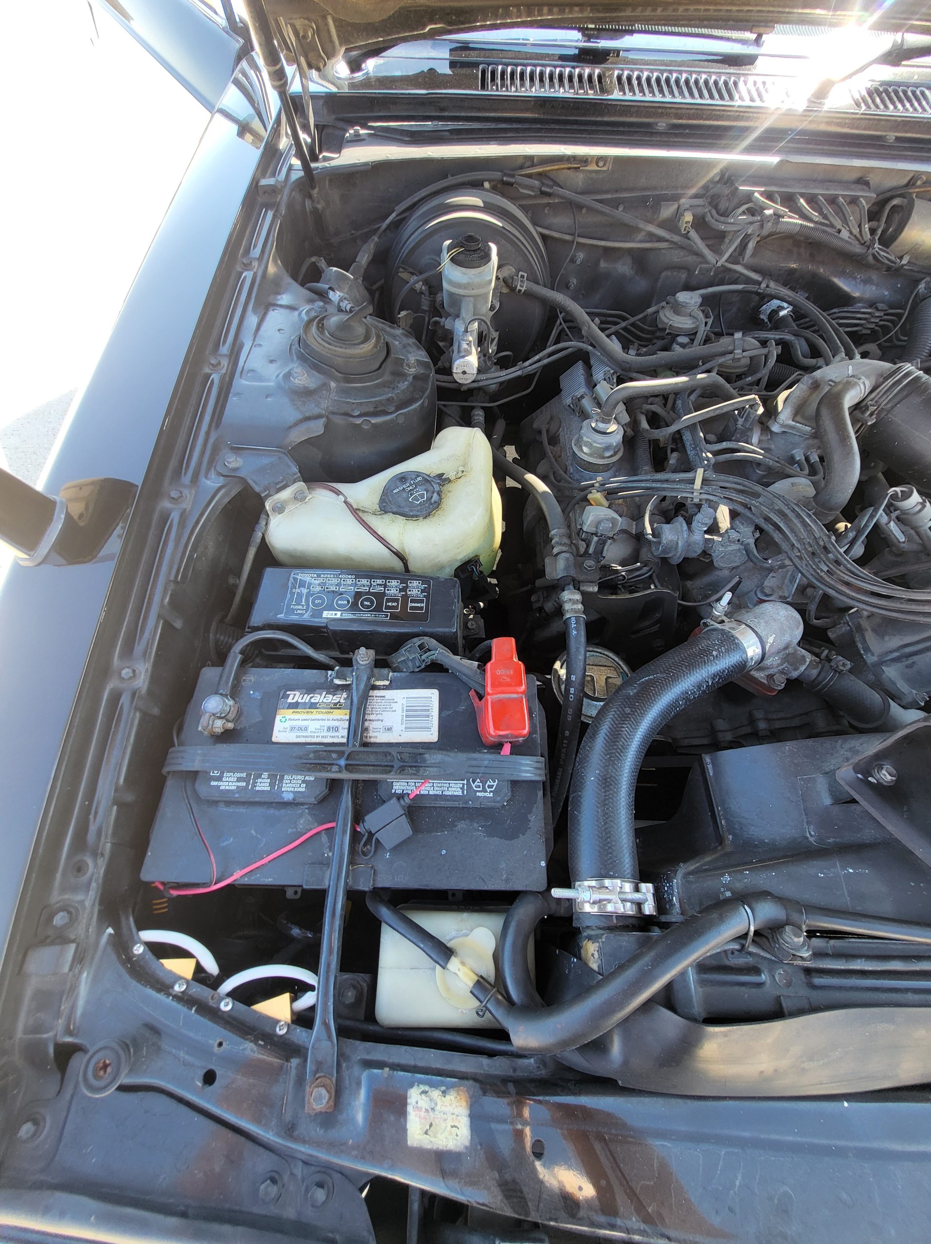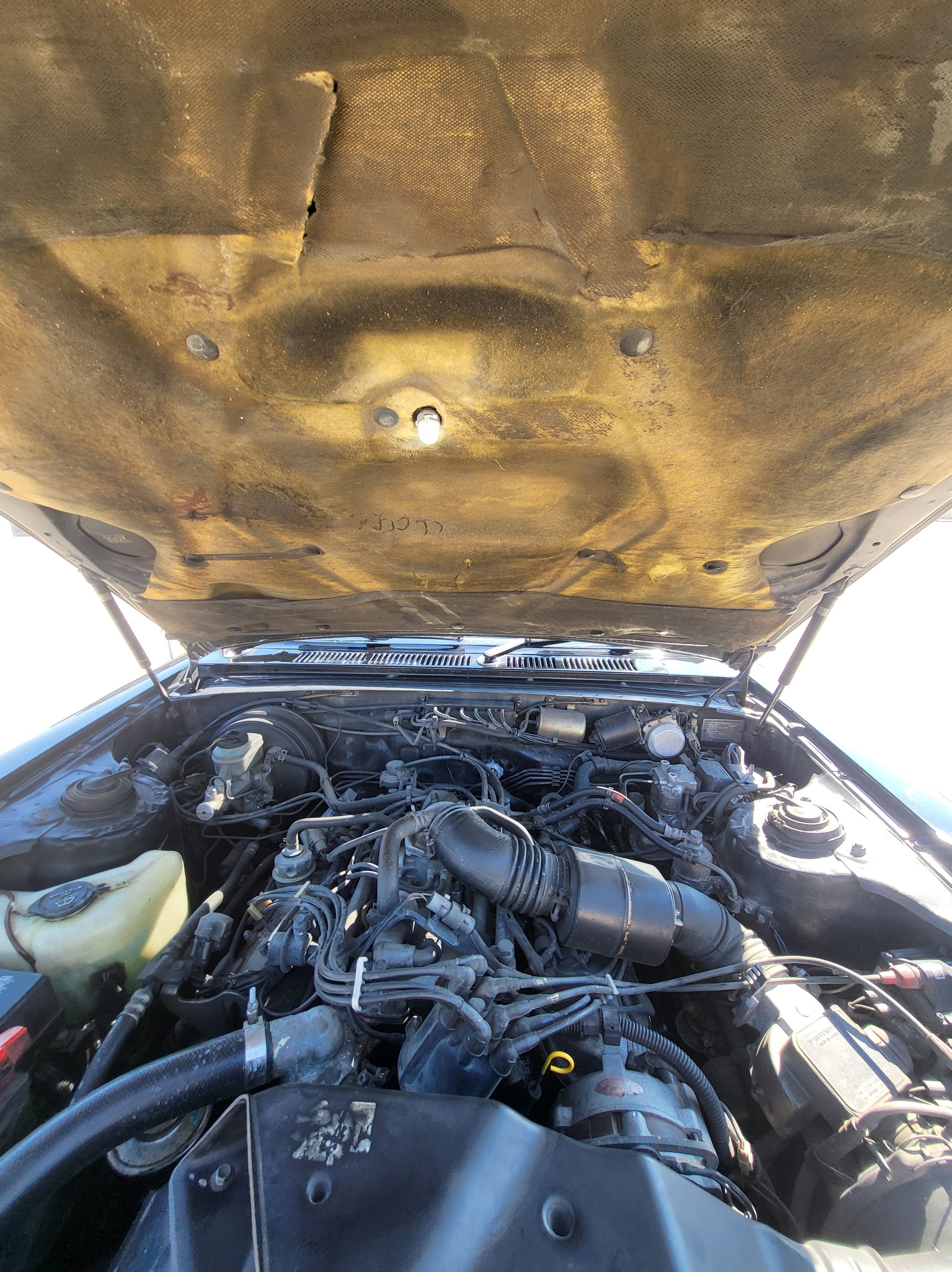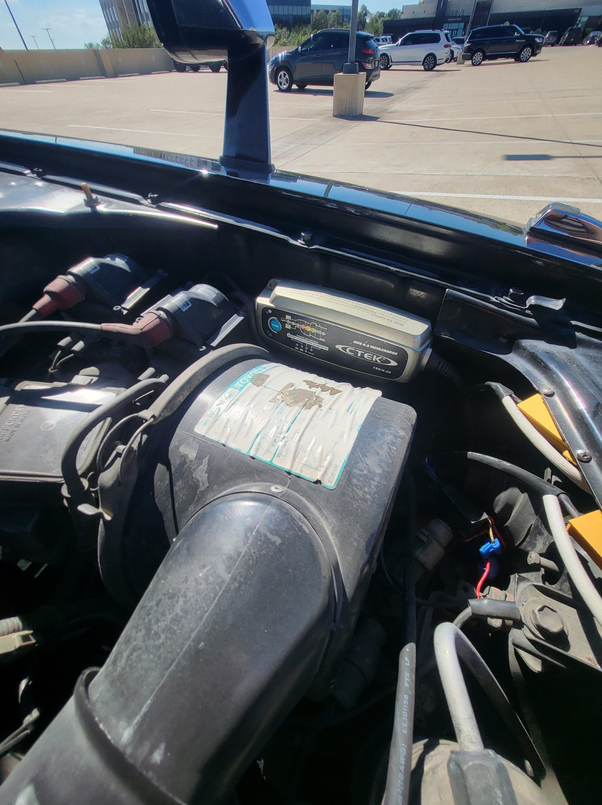 Engine bay is in wonderful shape (note the integrated lamp in the center) Also note the integrated CTEK trickle charger hard mounted to the battery for easy charging if you don’t drive it for a while. Also the car has a new thermostat and new radiator hoses and I put t-bolt clamps instead of the worm gears, also the alternator is new. Also I service the AC maybe around 2 years ago and changed the coolant out and all that, blows like ice. Also if you see the wires up by the headlights, that look aftermarket, that’s load resistors for the LED turn signals.