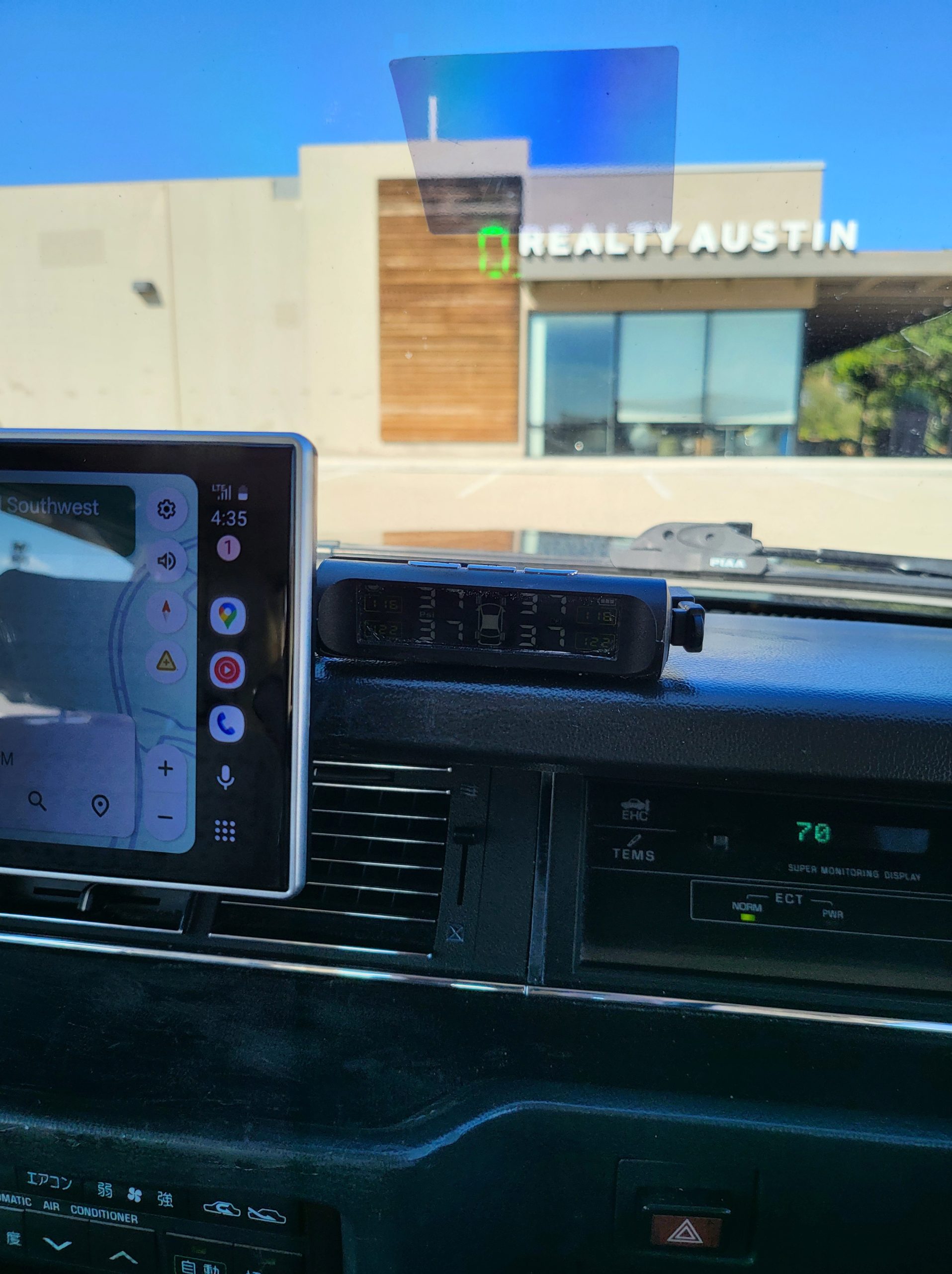 Android auto capability (dash cam, bluetooth, spotify, google maps, voice controlled ie. “hey google, navigate to whereever” etc). Stock spedometer is in kilometers, added a LED heads up display that displays in MPH. Easy to see in direct sunlight. Also aftermarket TPMS monitor with alerts for low tire pressure and so-on